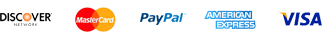 We securely accept AMEX, Visa, MasterCard, Discover and PayPal..