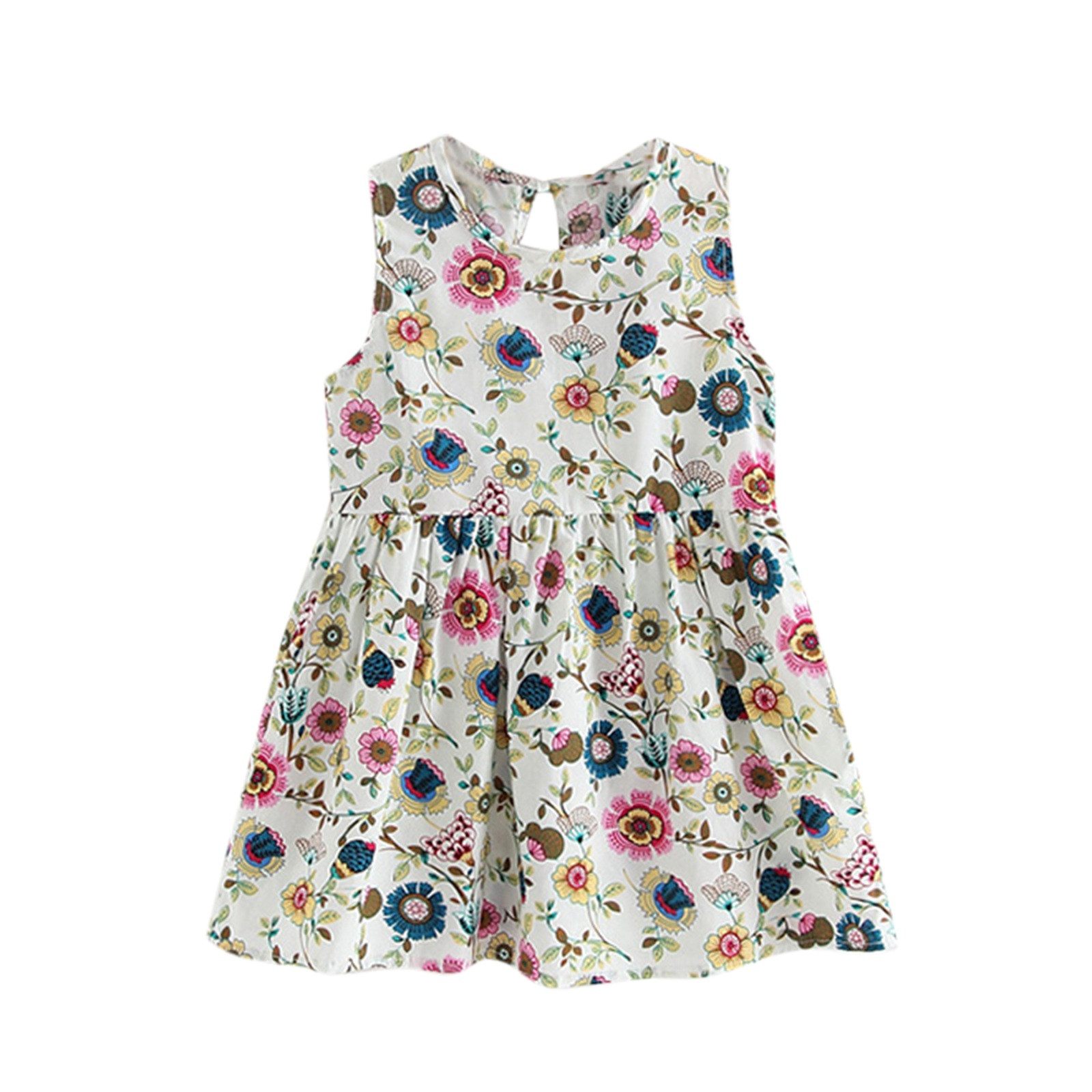 Kids Children Girls Summer Floral Print Sundress Cute Sleeveless Princess Dress