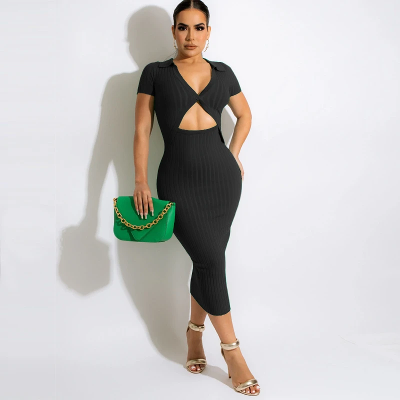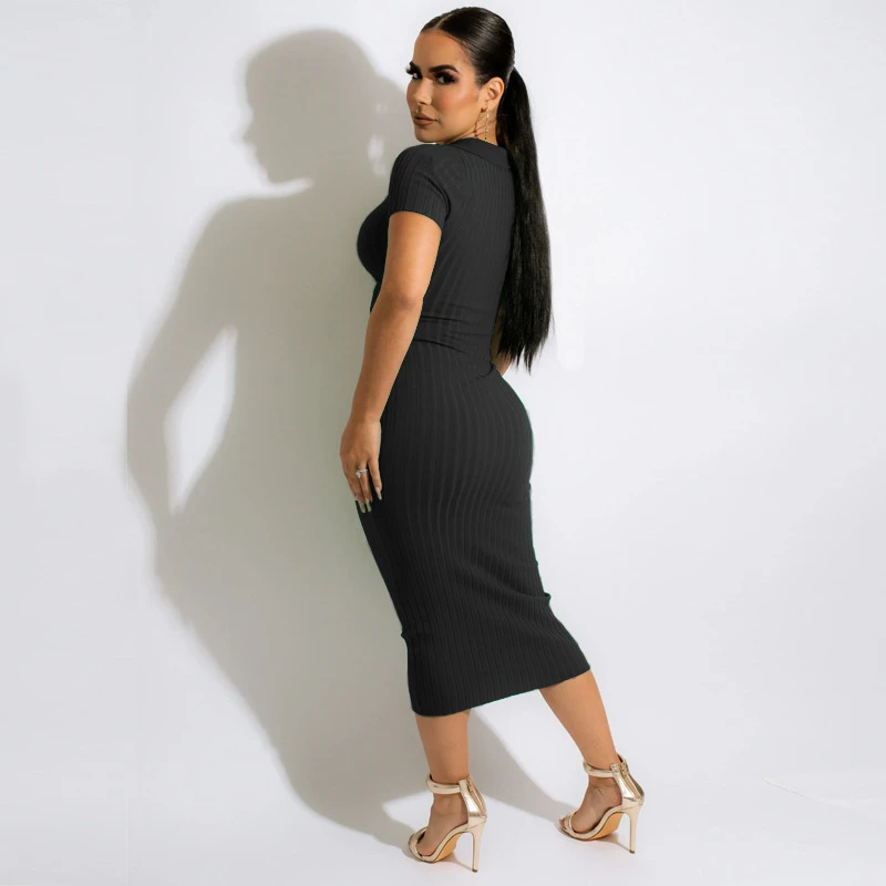 Adogirl Ribbed Knit Midi Dress Women Sexy
