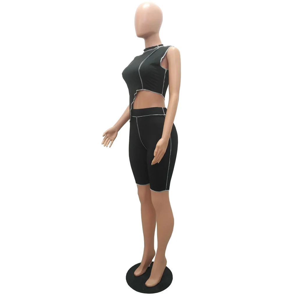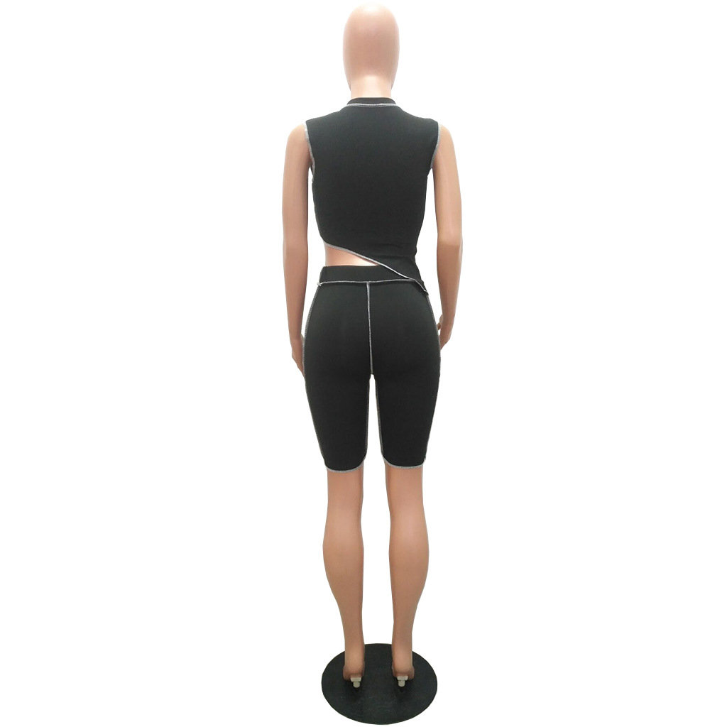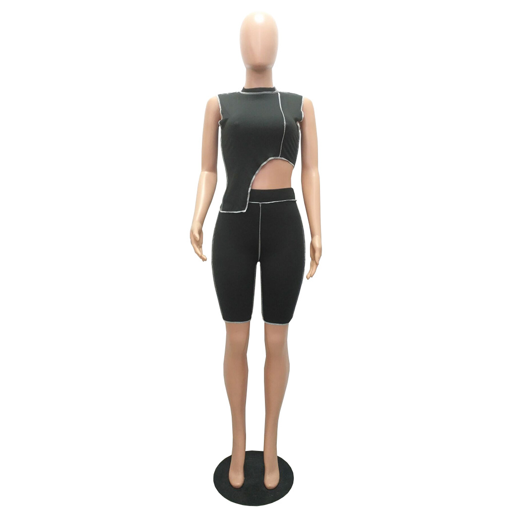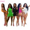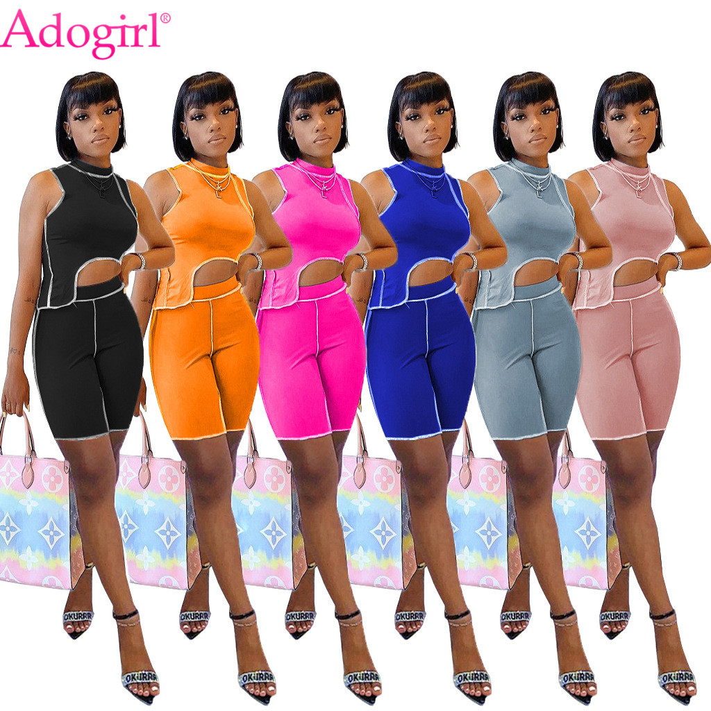 Adogirl Sexy Patchwork Two Piece Shorts Set XS-2XL O Neck Sleeveless Irregular Crop Top Mini Skirt Suit Club Outdoor Casual Set
