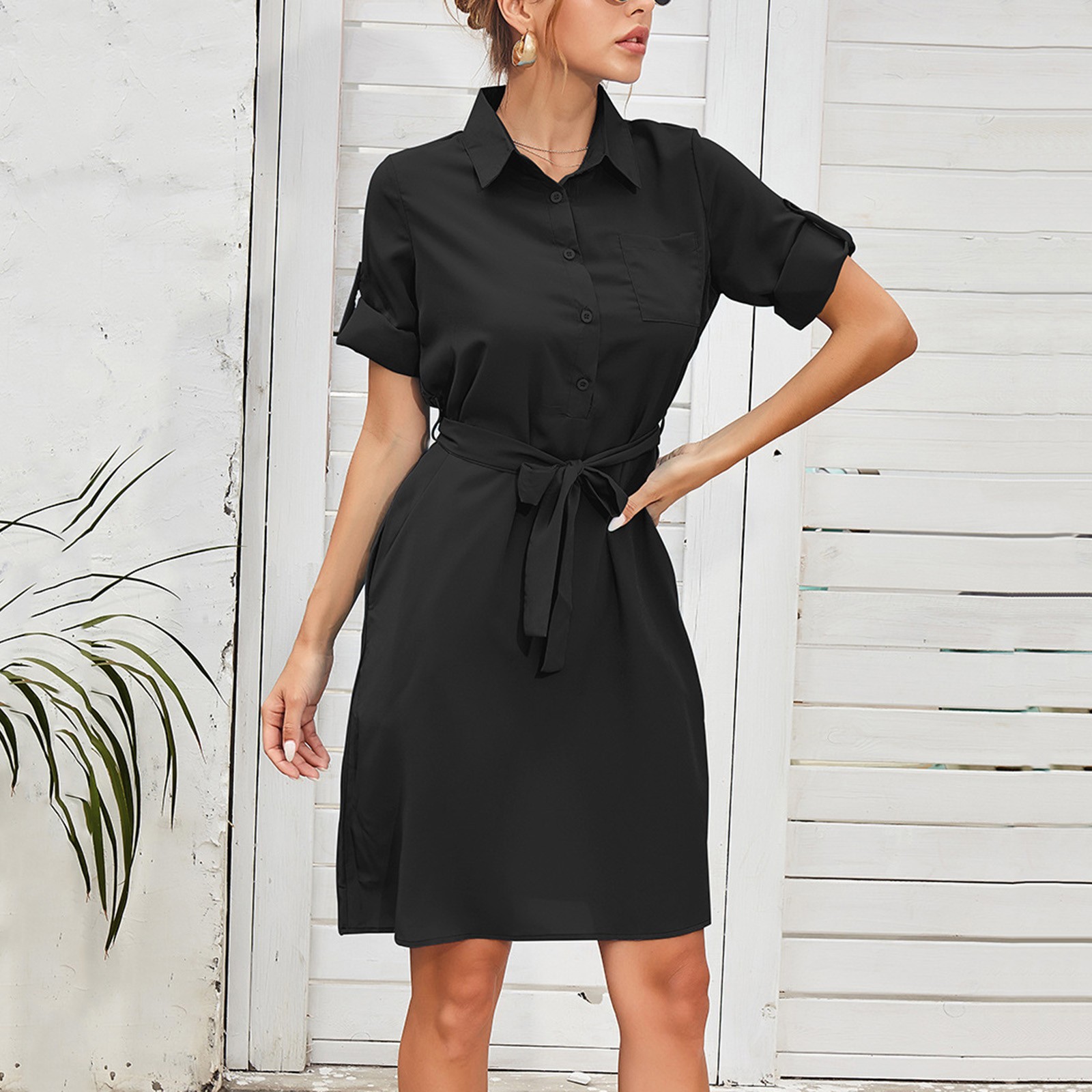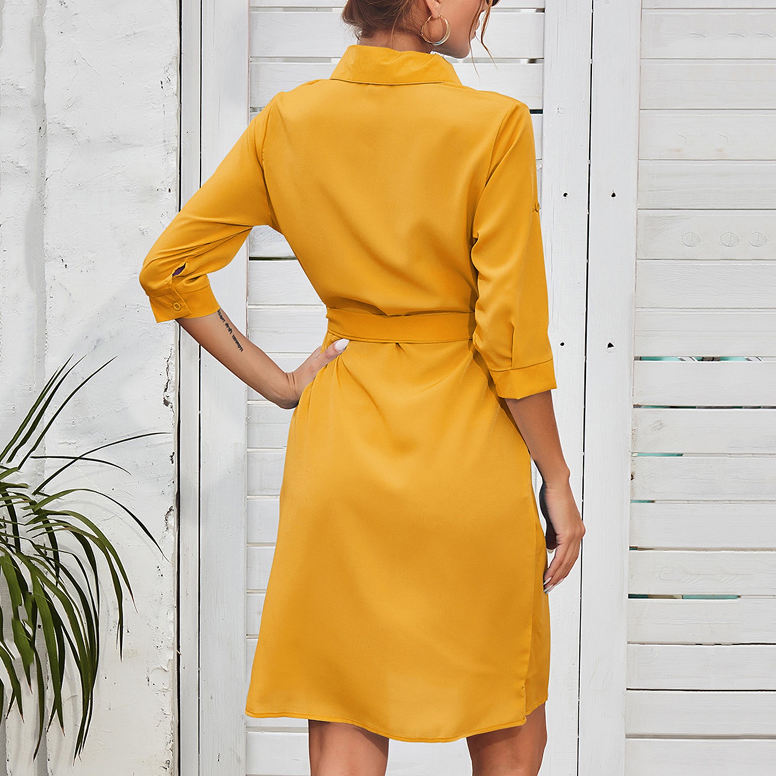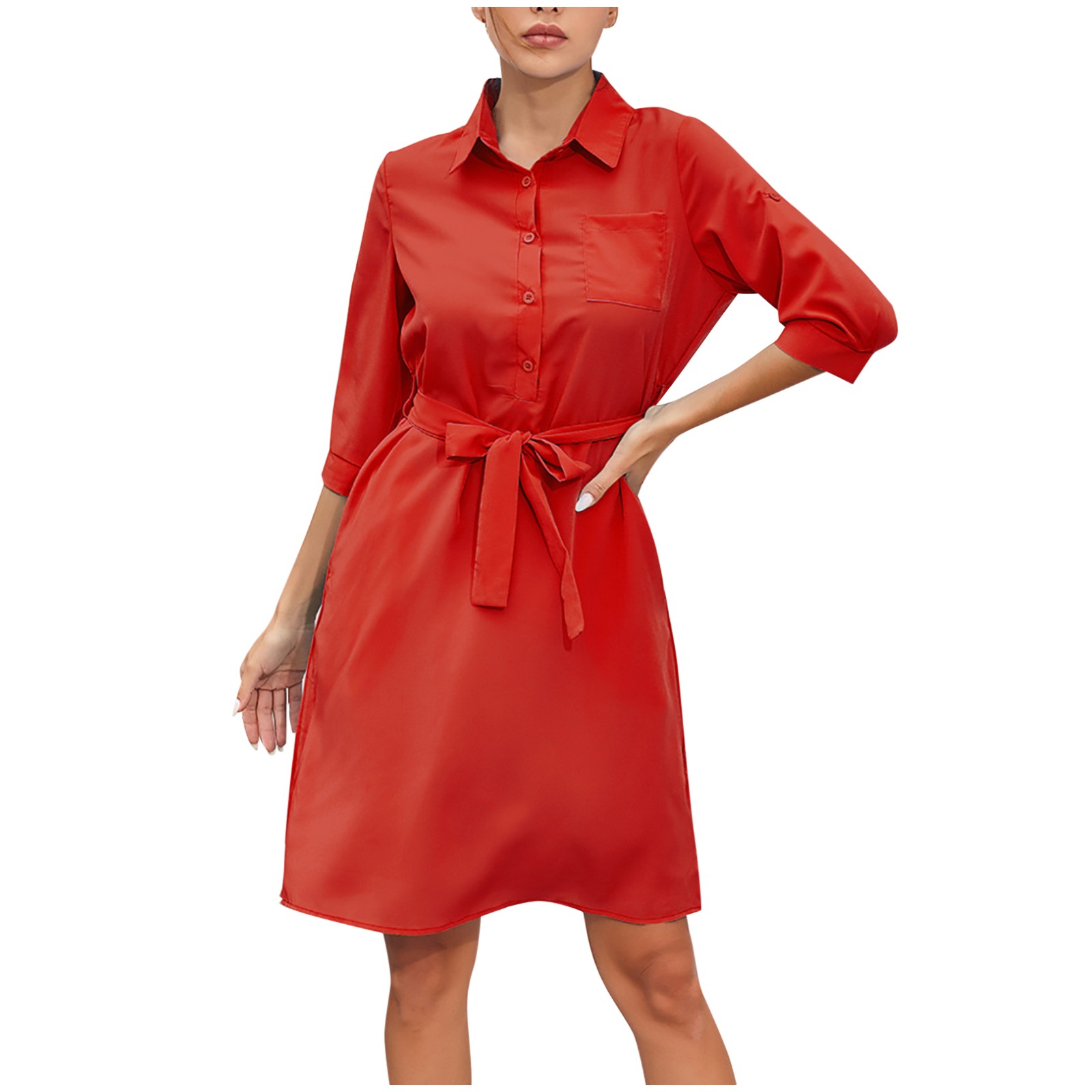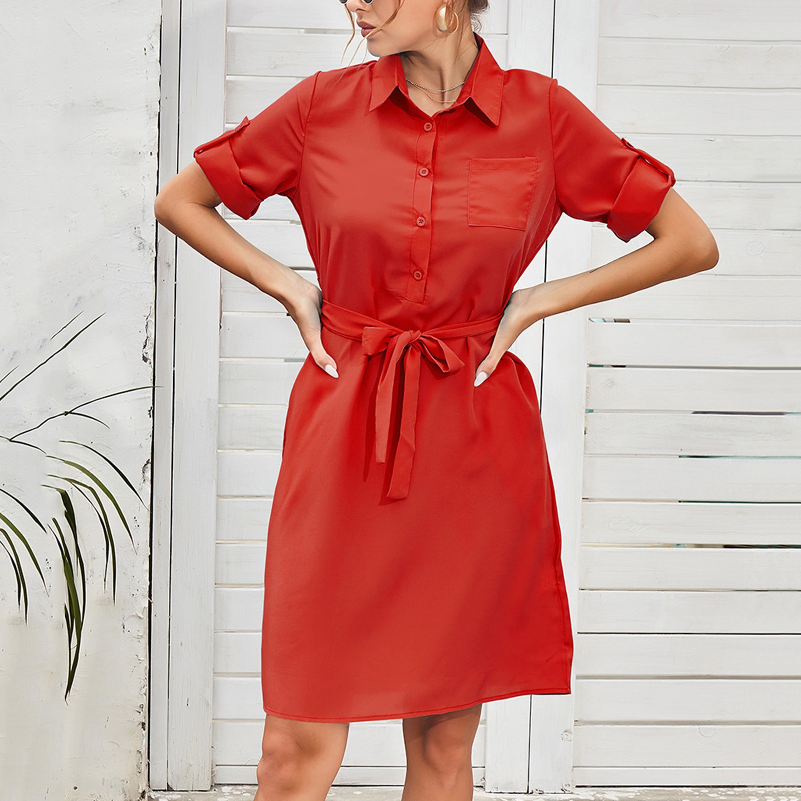 Women’s Fashion Casual V-Neck Half Sleeve Strap Open Back Sexy Shirt Dress
