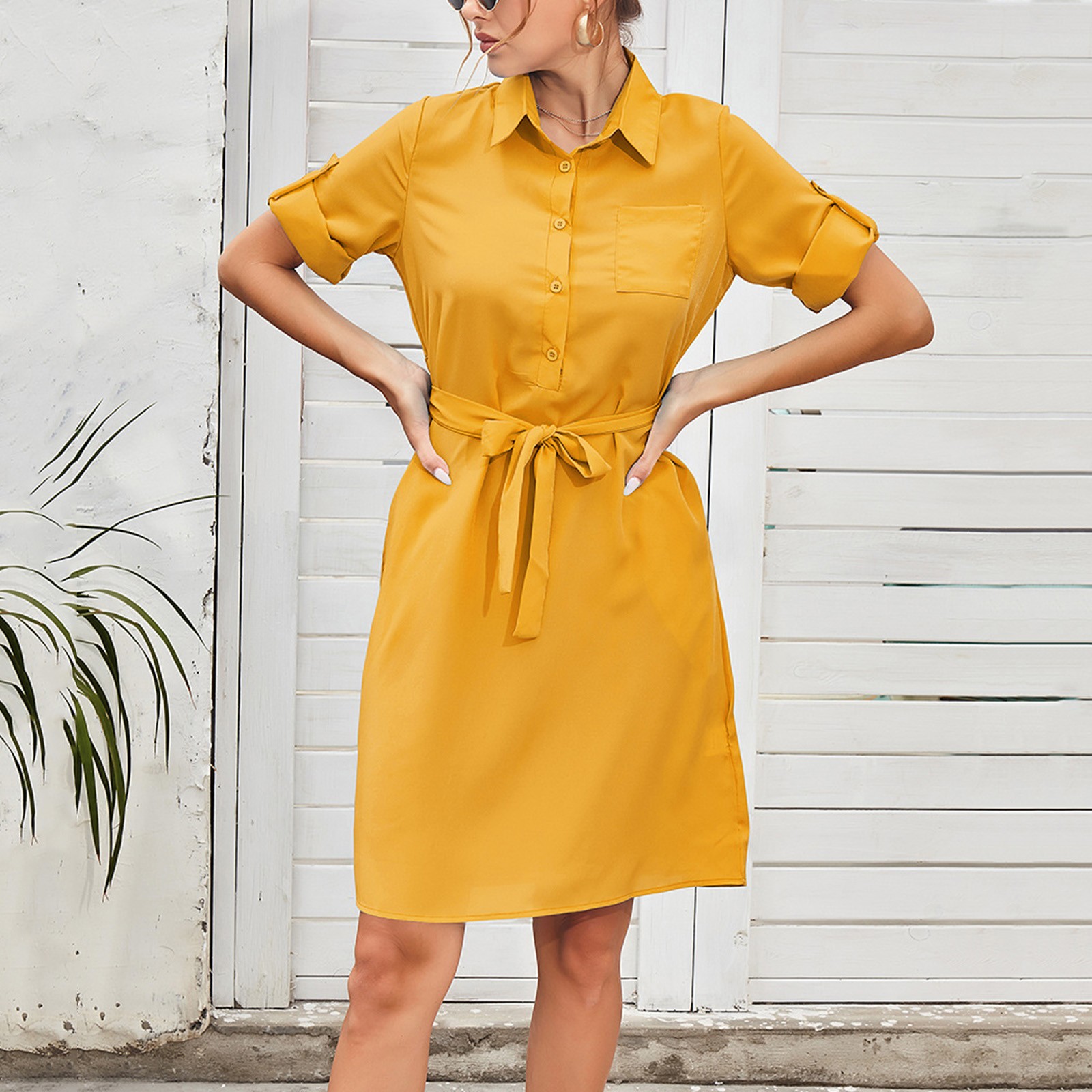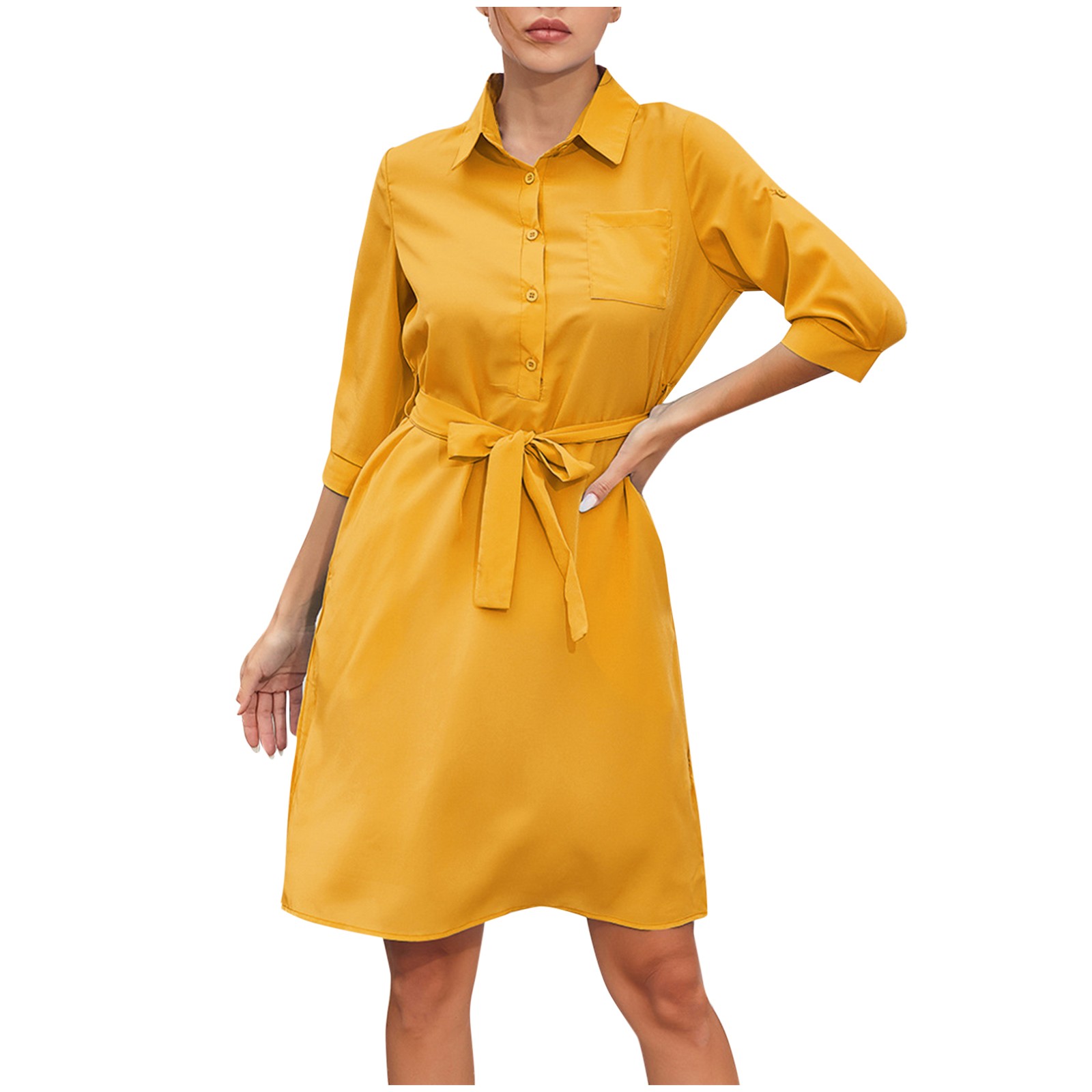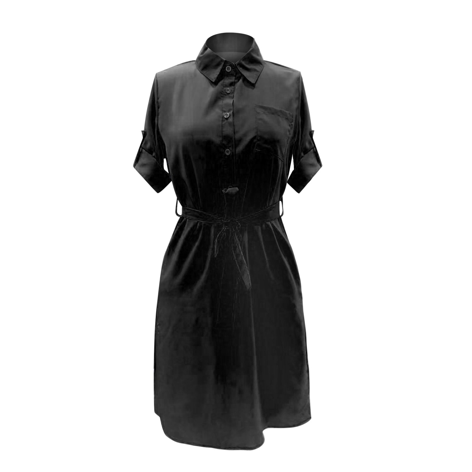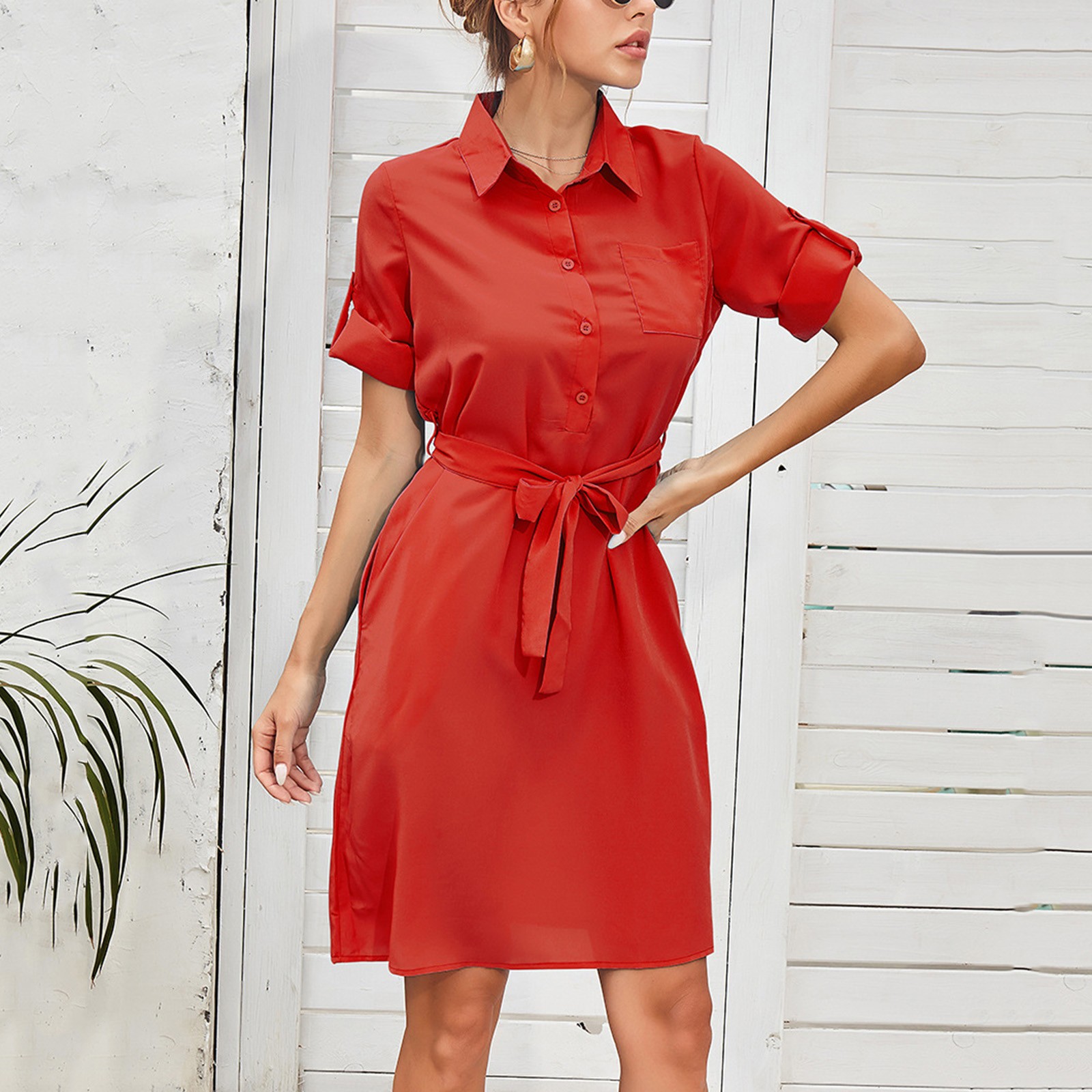 Women’s Fashion Casual V-Neck Half Sleeve Strap Open Back Sexy Shirt Dress