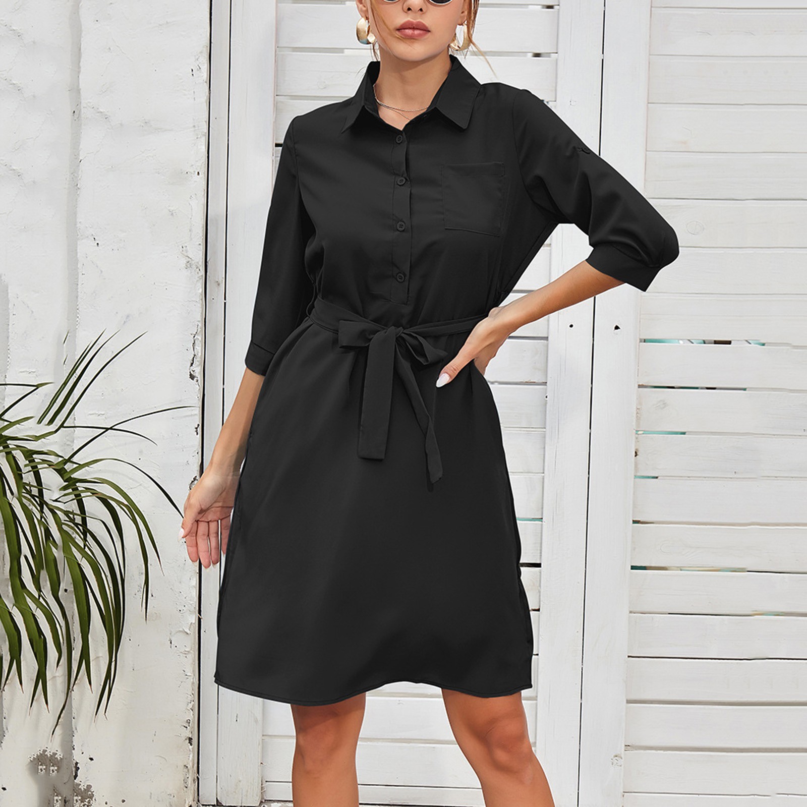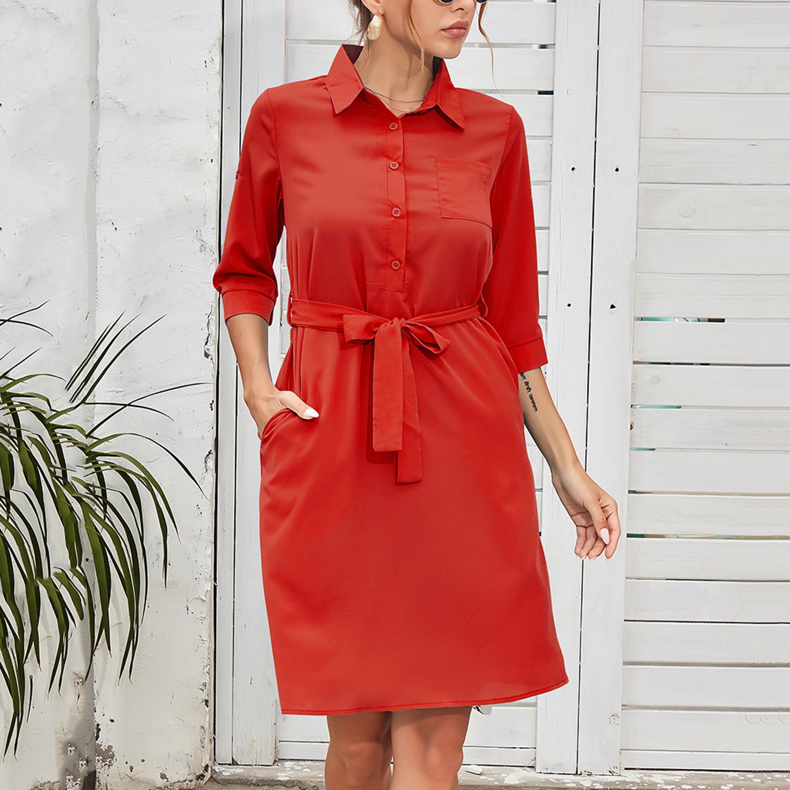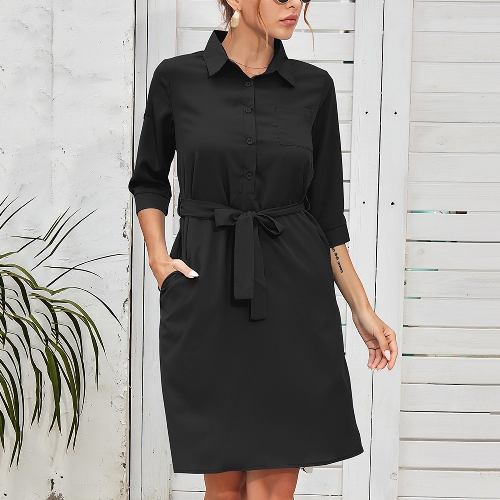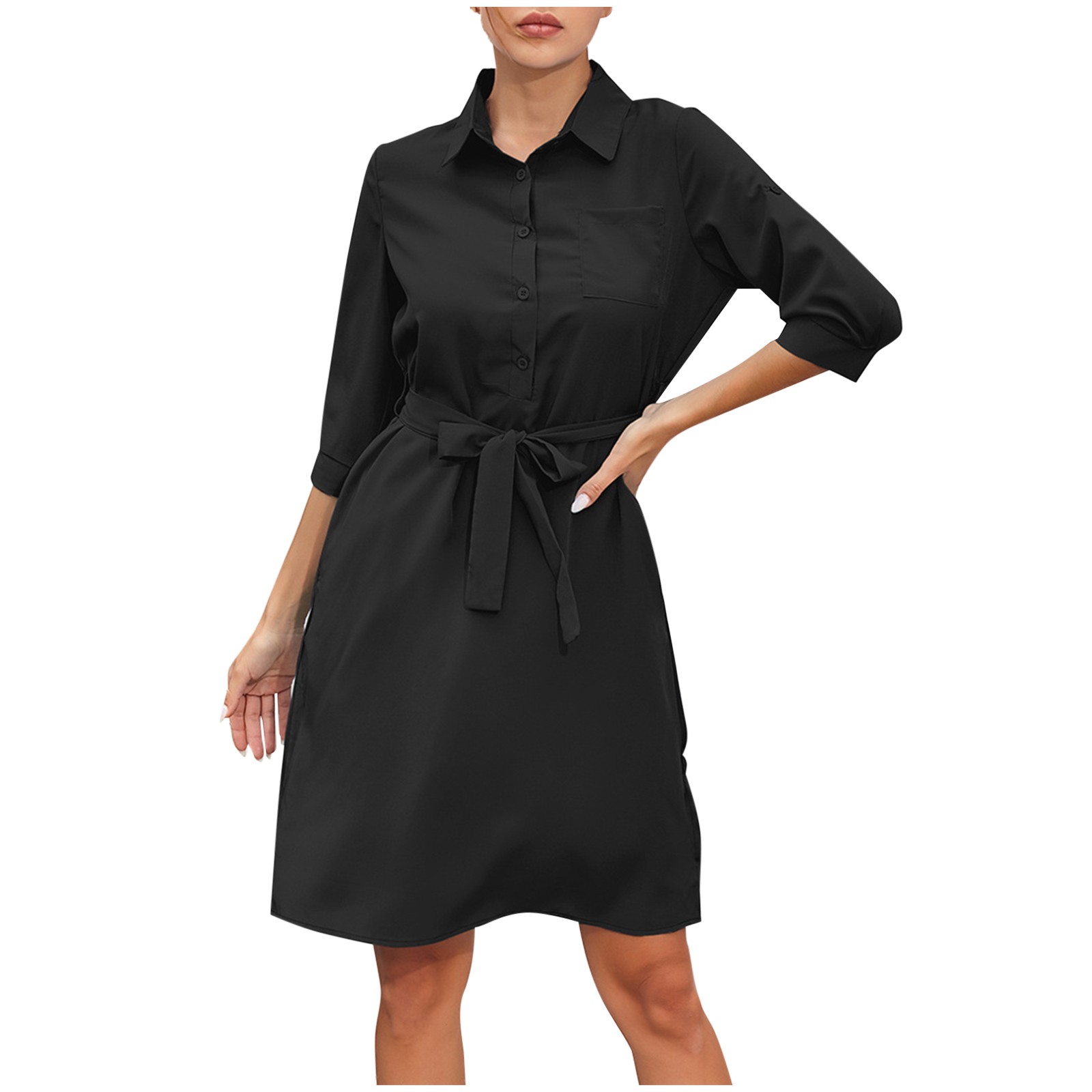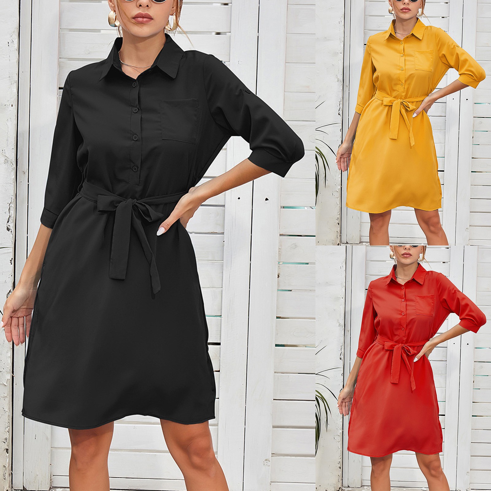 Women’s Fashion Casual V-Neck Half Sleeve Strap Open Back Sexy Shirt Dress