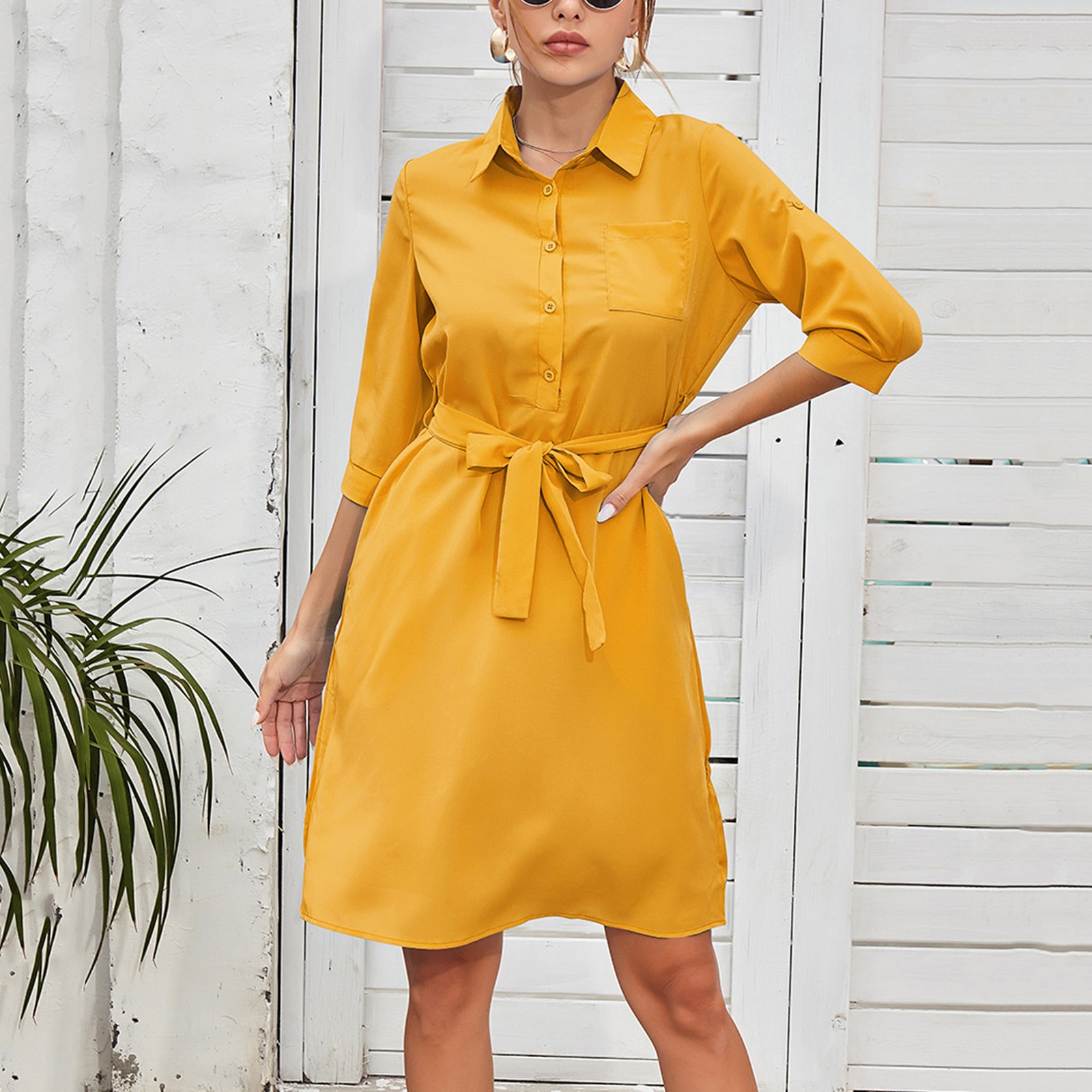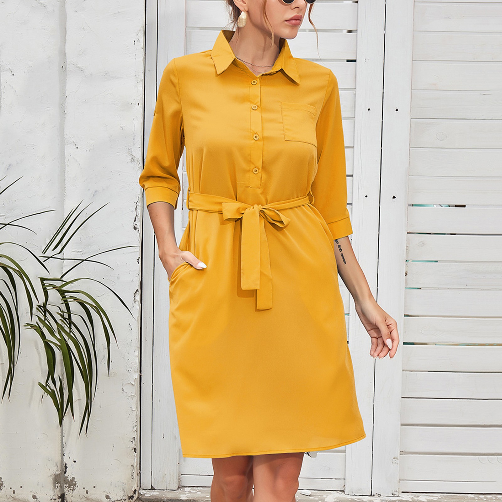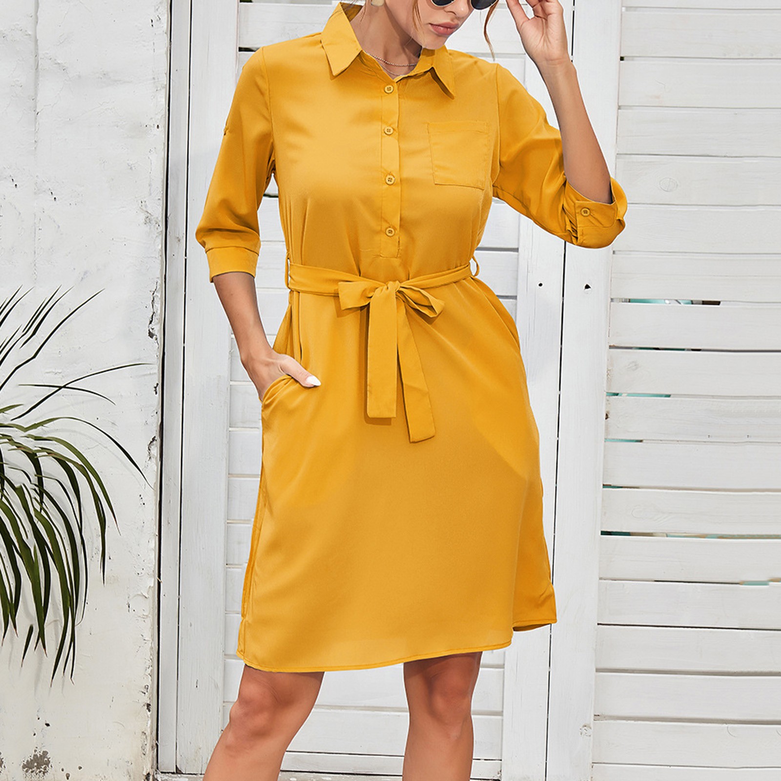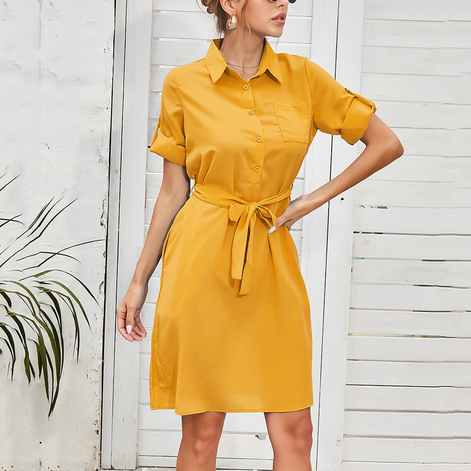 Women’s Fashion Casual V-Neck Half Sleeve Strap Open Back Sexy Shirt Dress