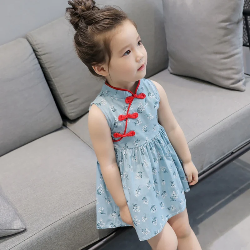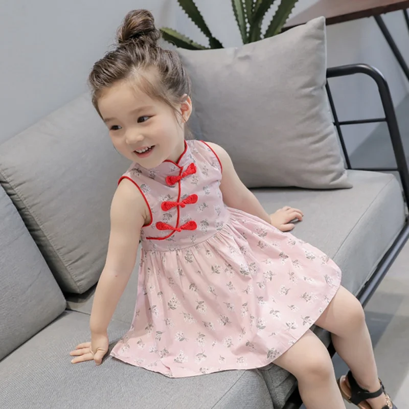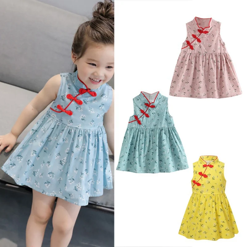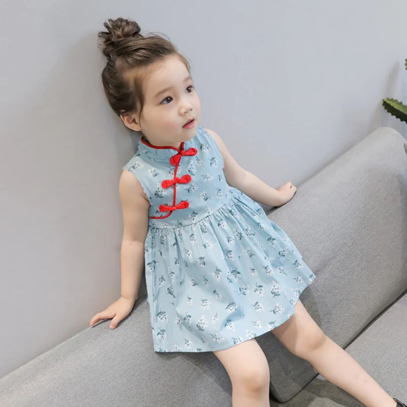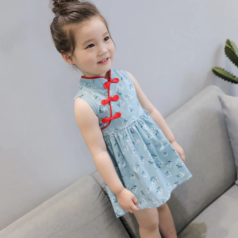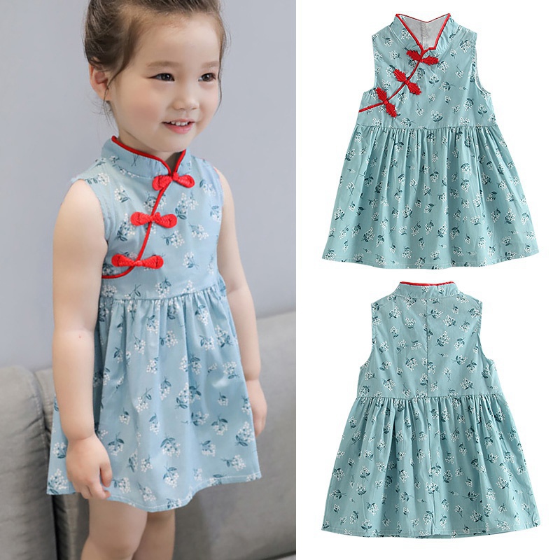 Cute flower print Chinese style vintage cheongsam dress, stylish and attractive, which will make your little princess look cuter and fashion