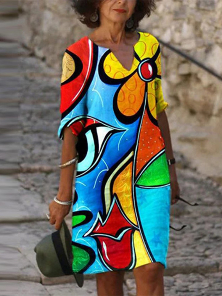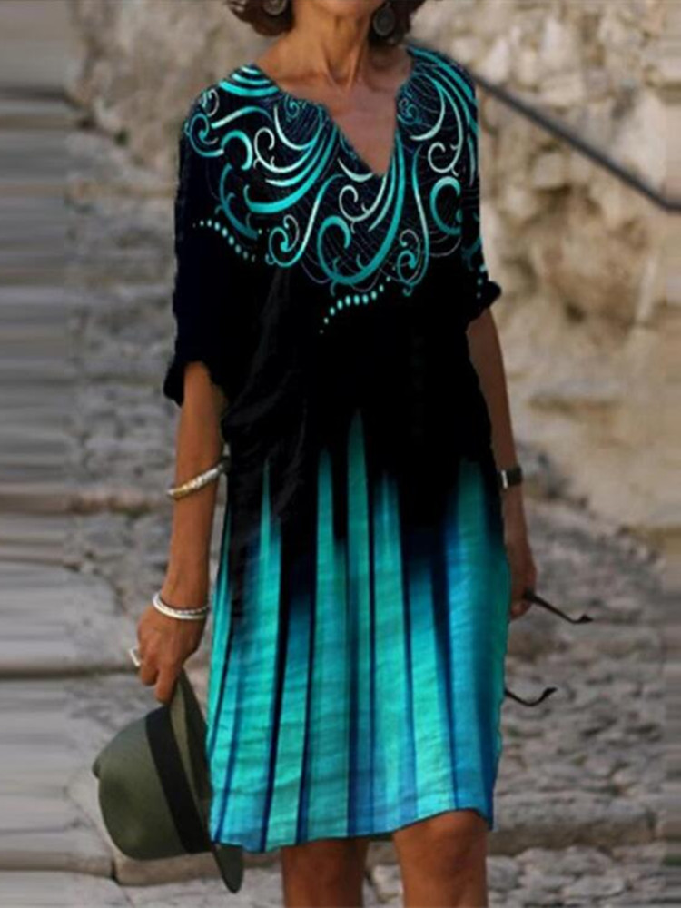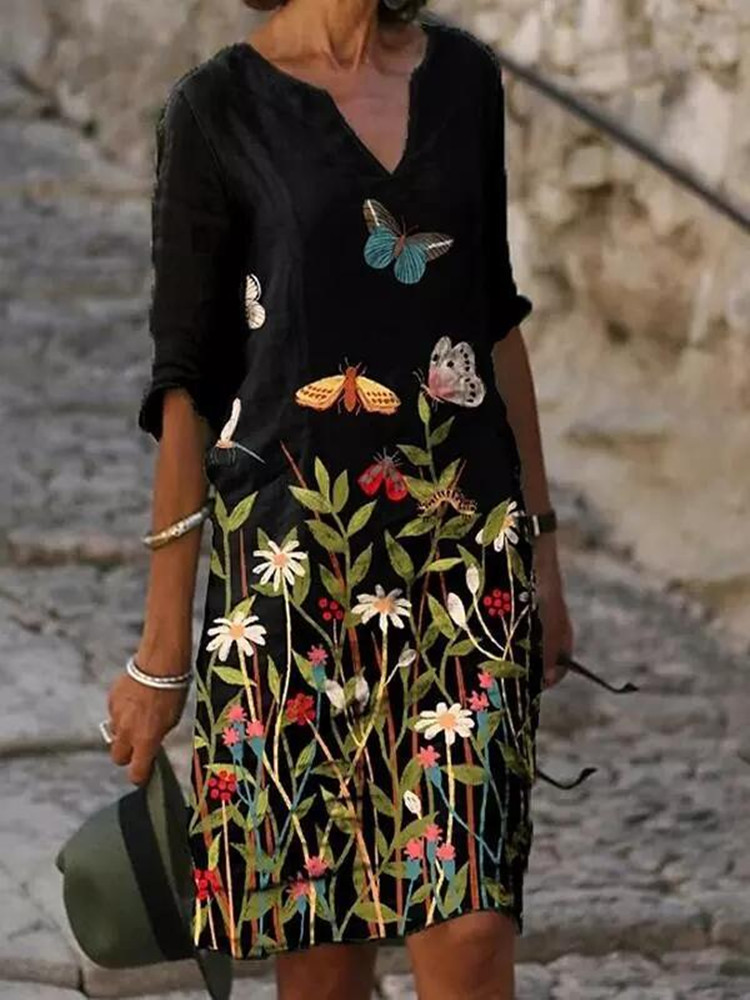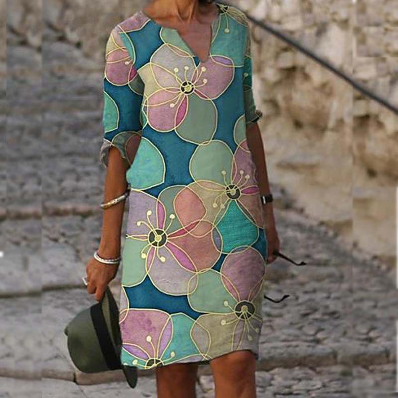 Women Elegant Floral Print Dress Summer New Half Sleeve Knee-length Casual Office Beach Dress Vestidos