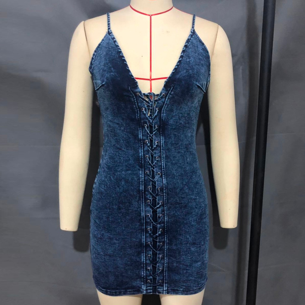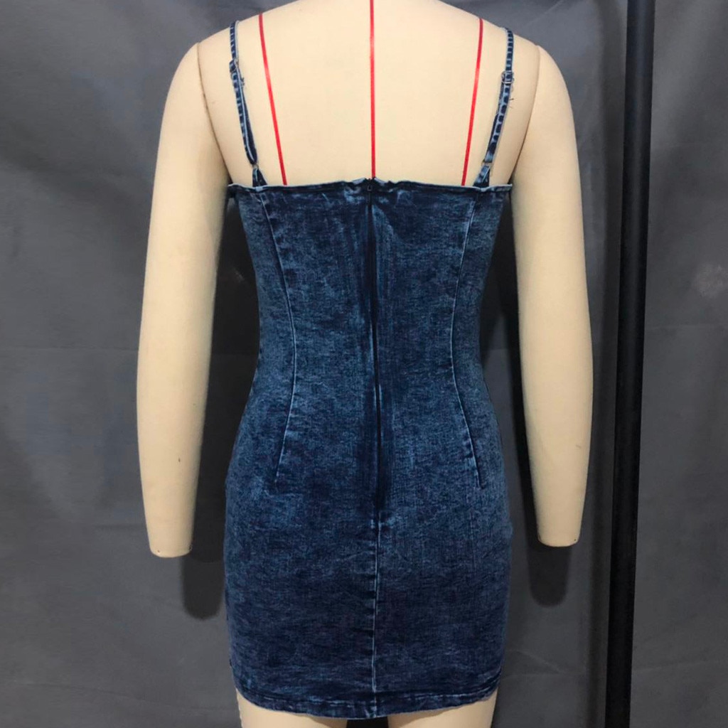 Fashion Women Sexy Stretch Denim Solid Color Sleeveless Bandage Mini Dress