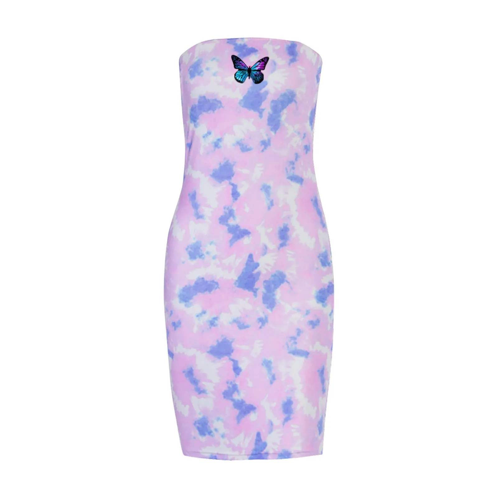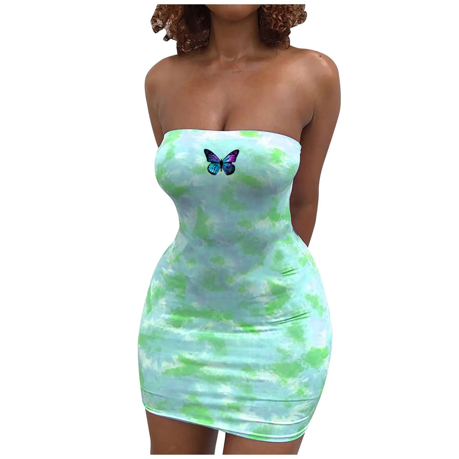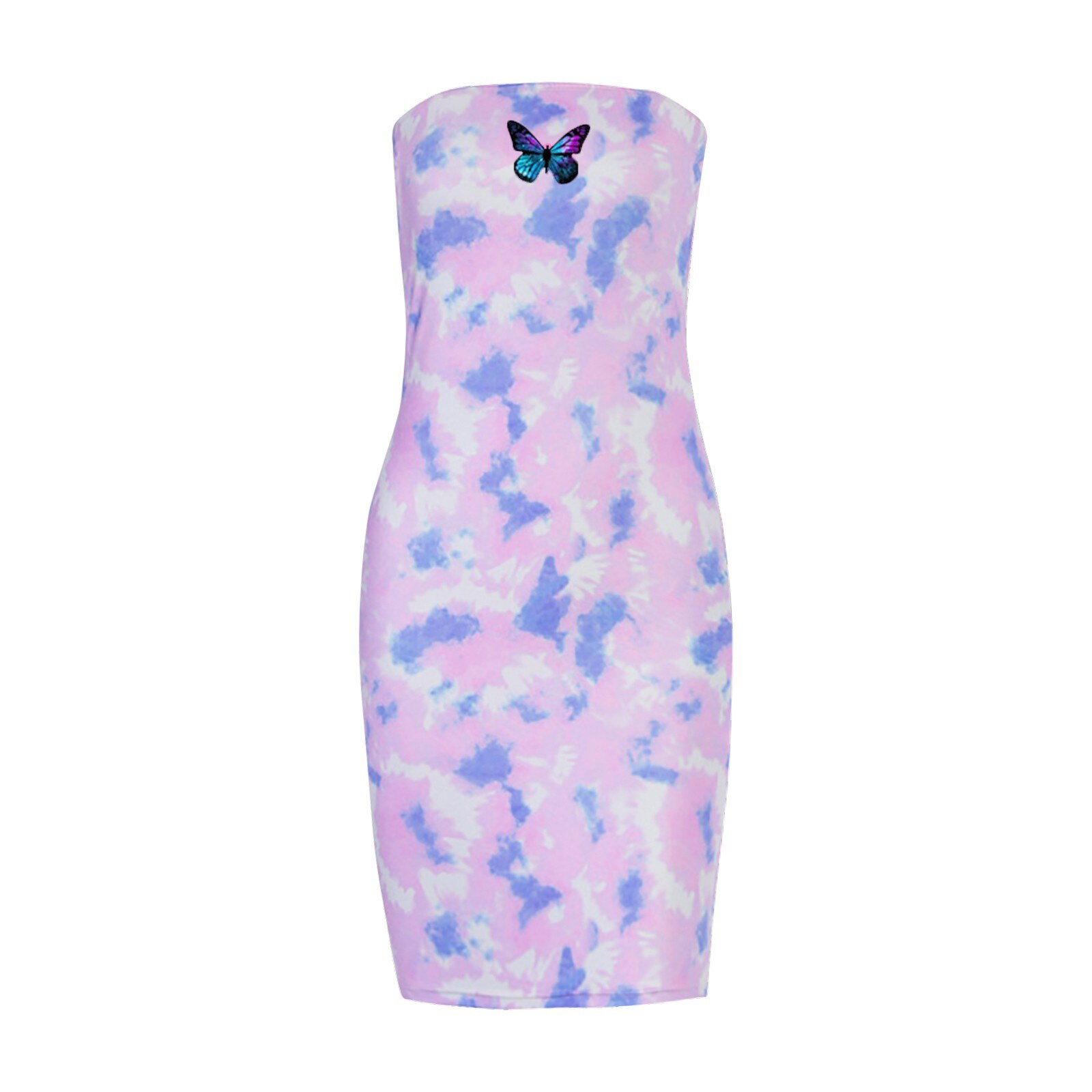 Fashion Women Sexy Off Shoulder Butterfly Tie dyeing Printing Sleeveless Dress
