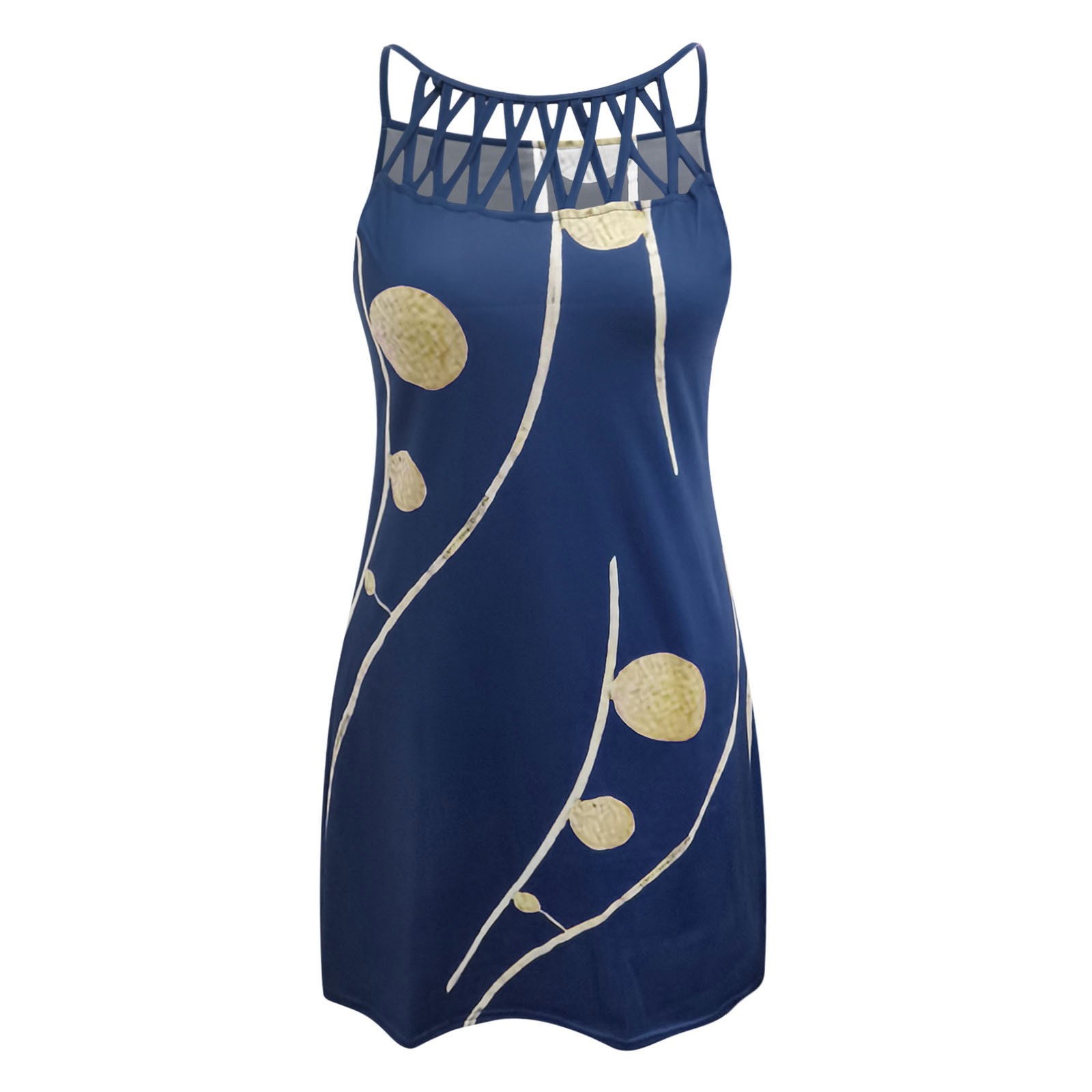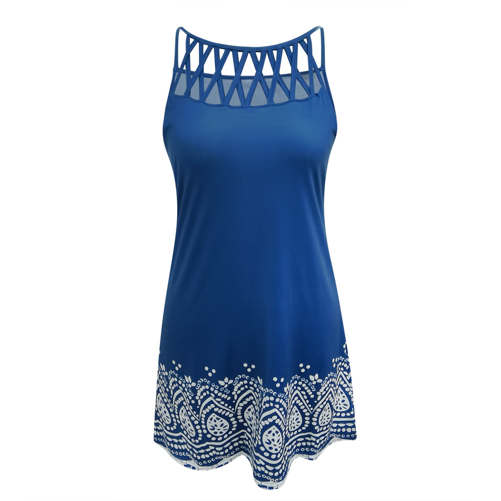 Womens Fashion Beach Boho Print Round Neck Sleeveless Splice Dress