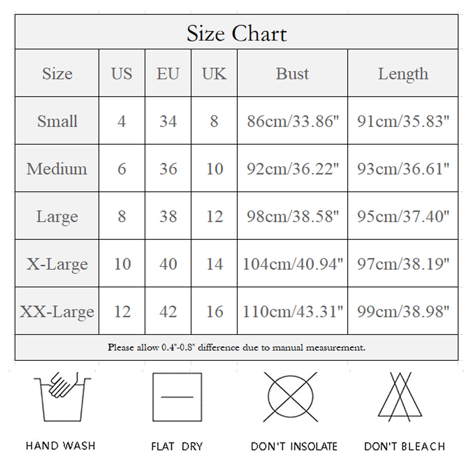 Size US EU UK Bust Length