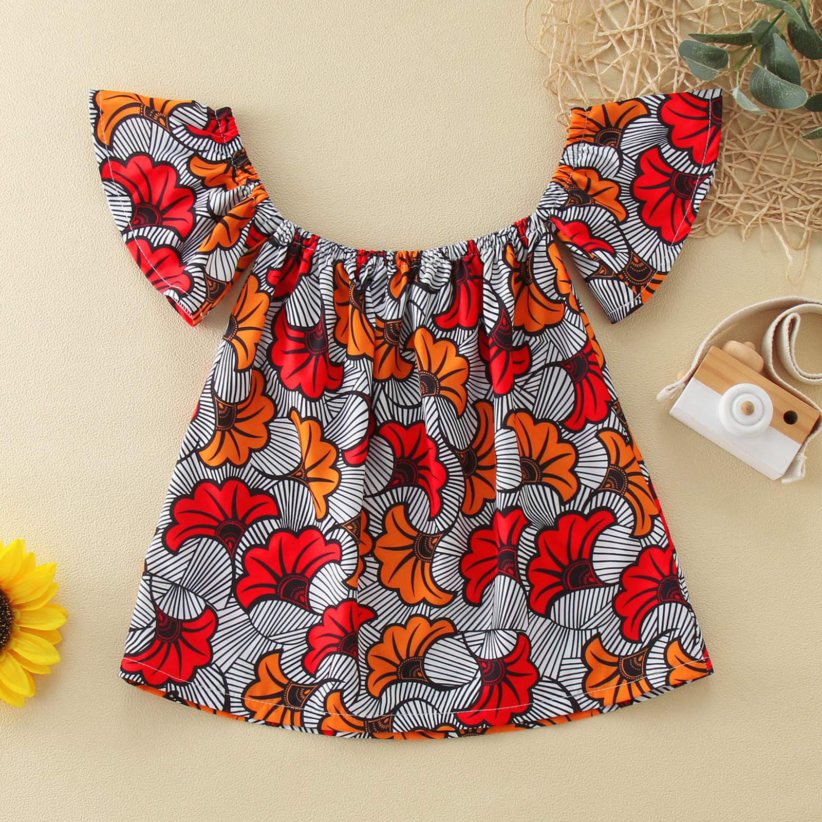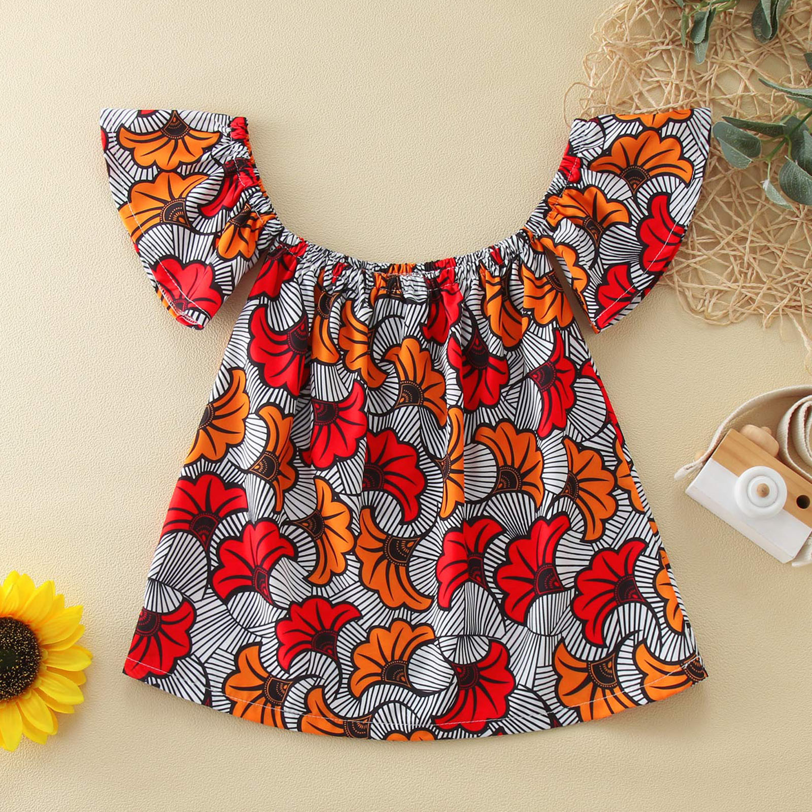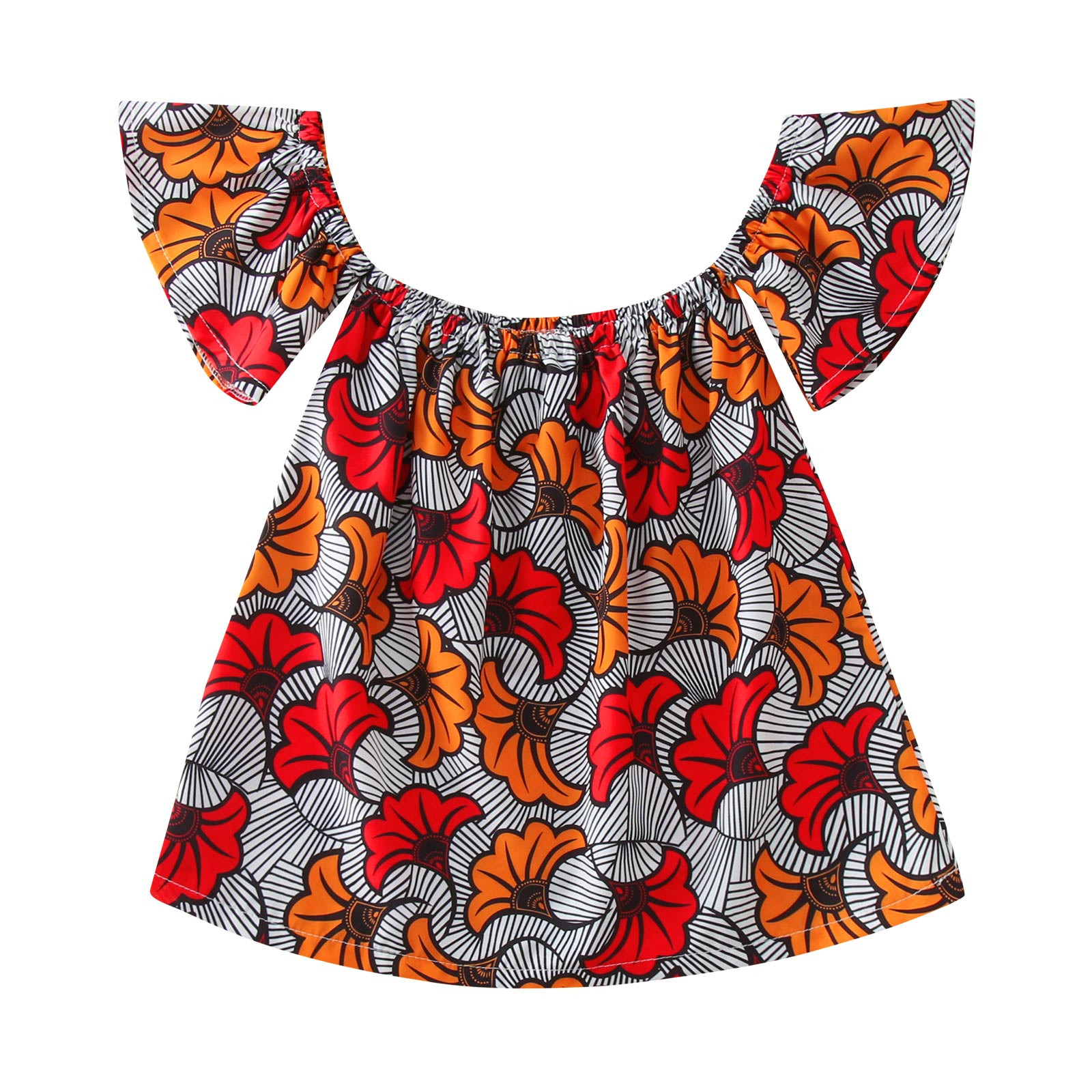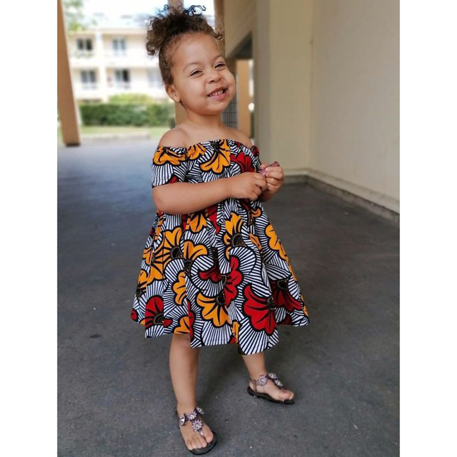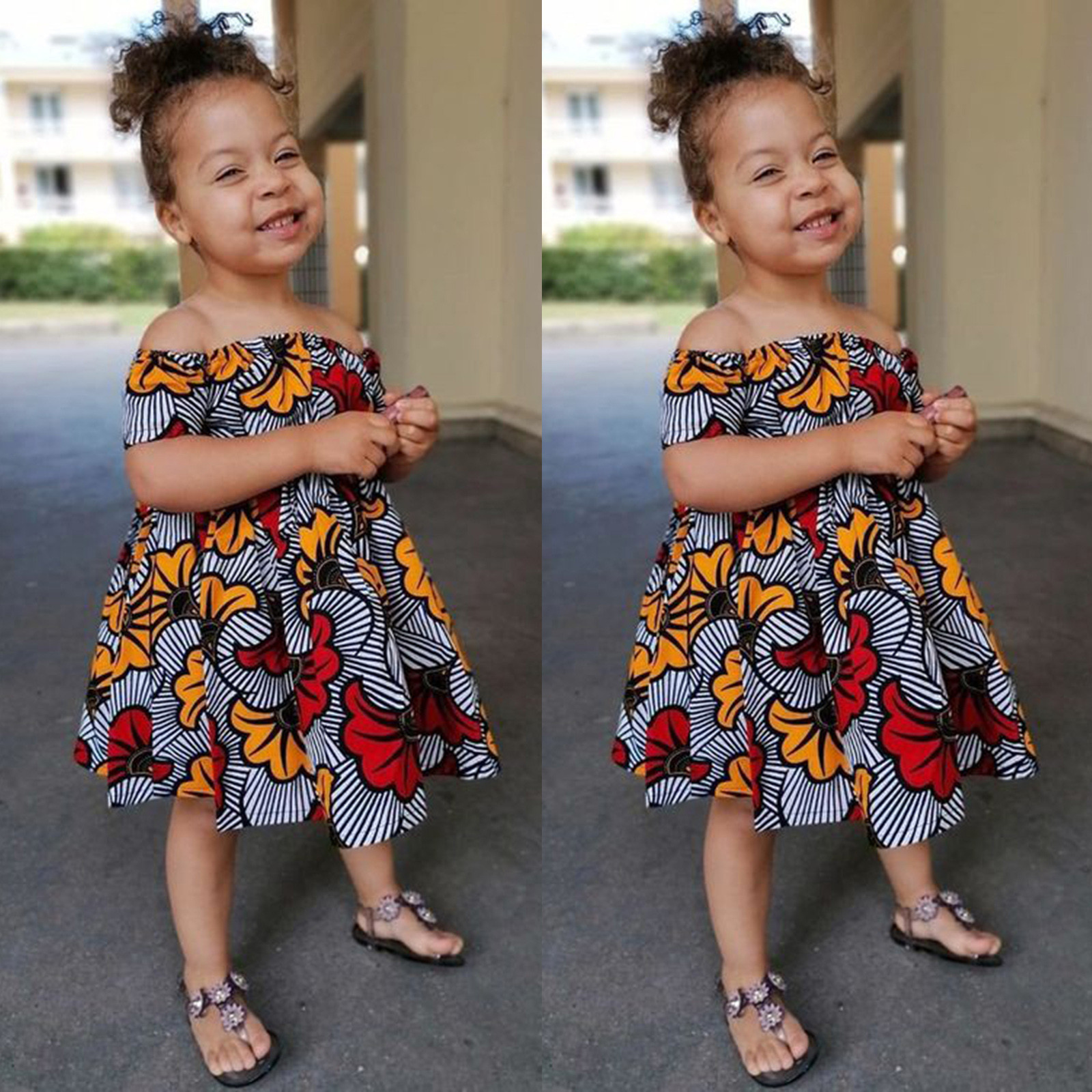 Toddler Kids Girls African Traditional Style Short Sleeve Off Shoulder Dress Ankara Princess Dresses Outfits 0-4 Years