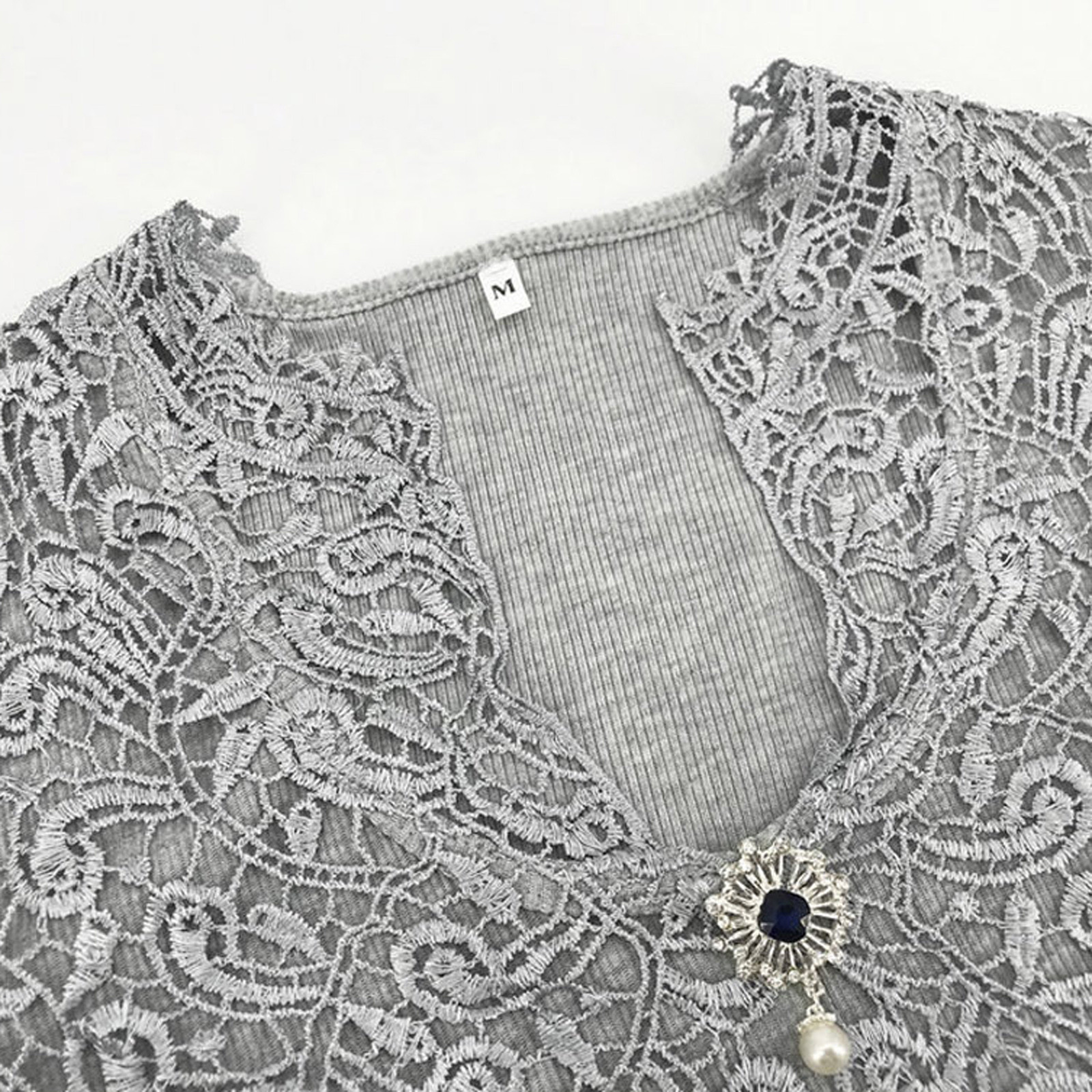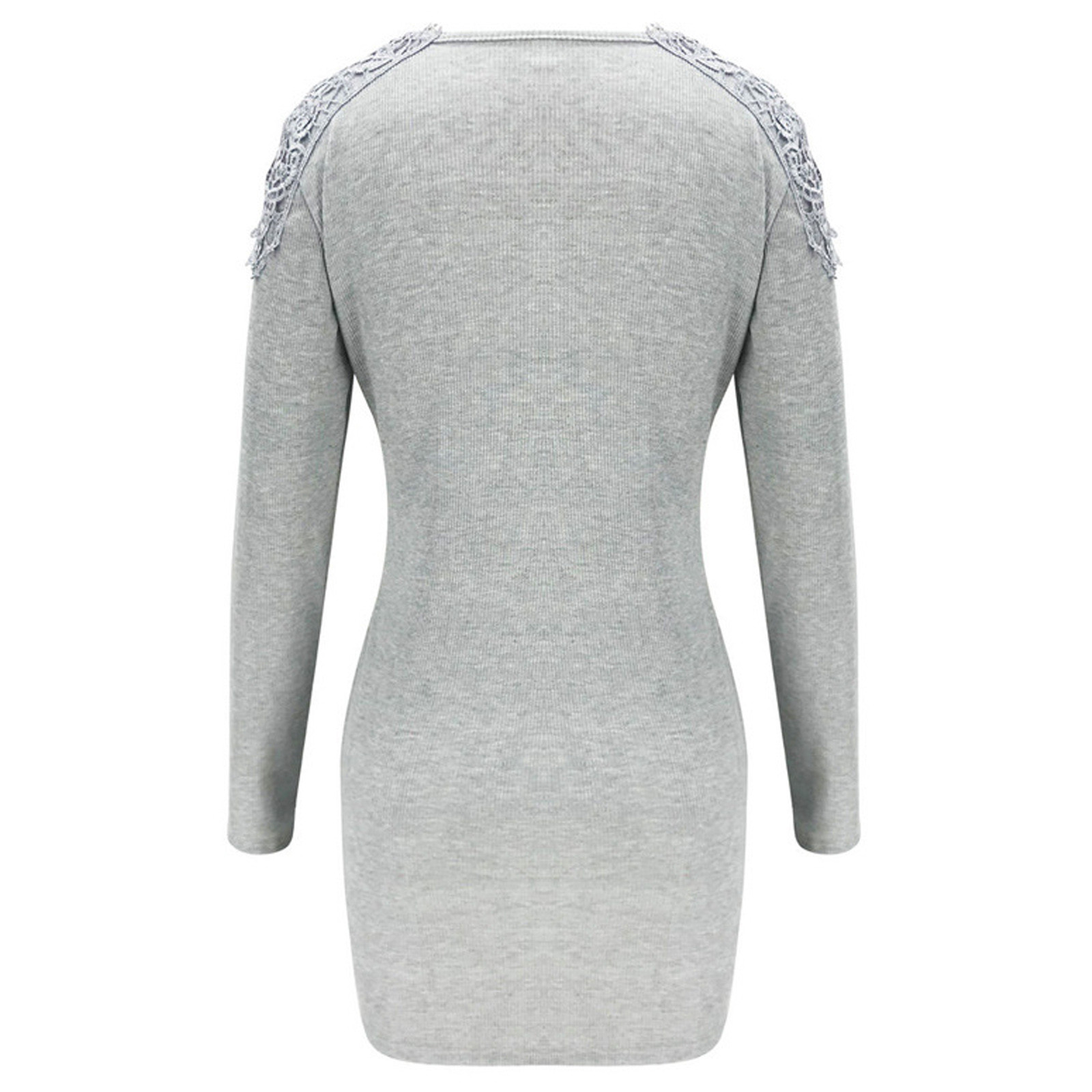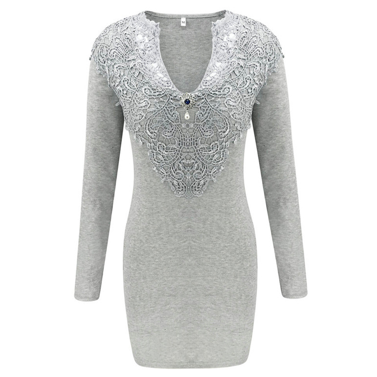 Women’s Fashion Solid Color V-Neck Lace Diamond Pendant Long Sleeve Dress
