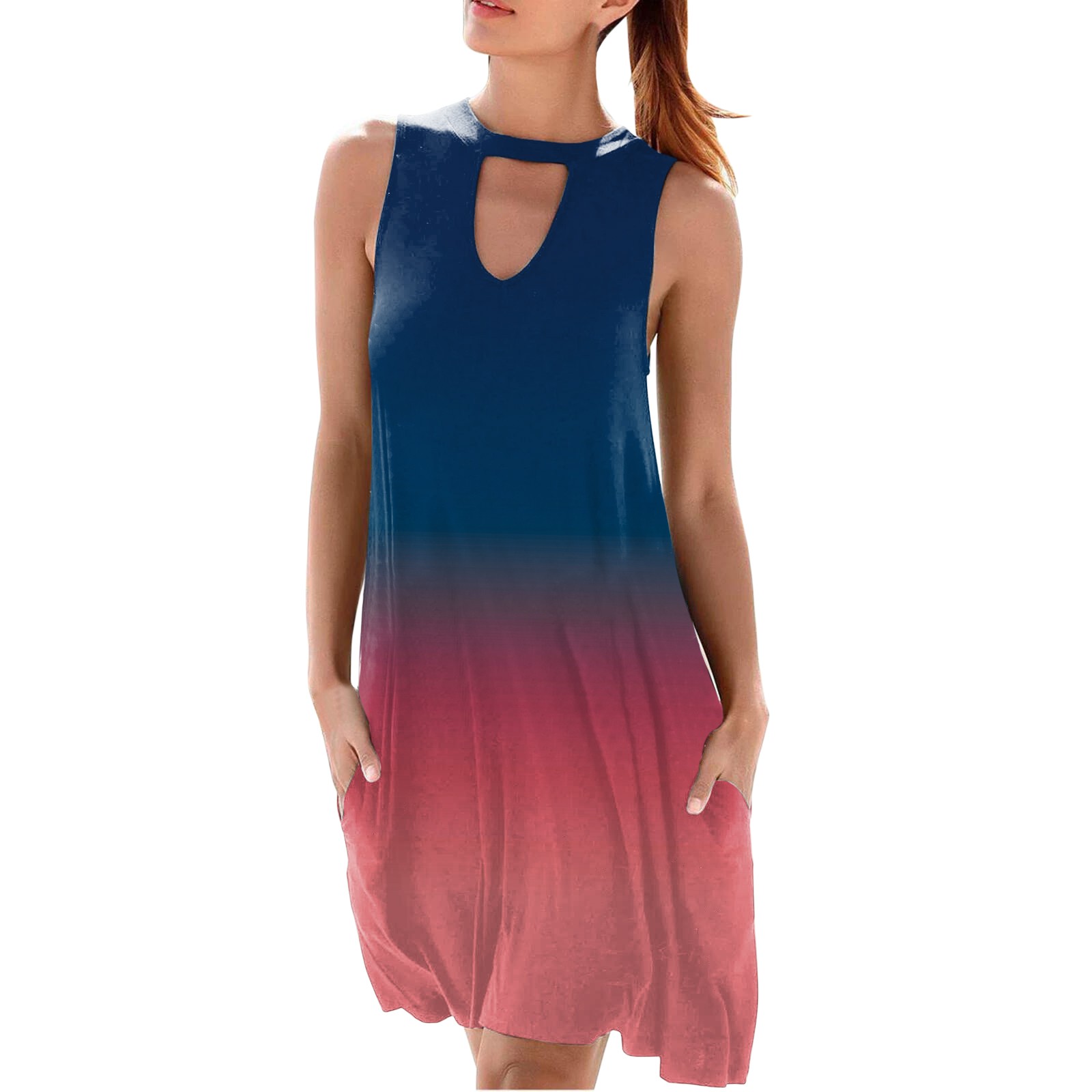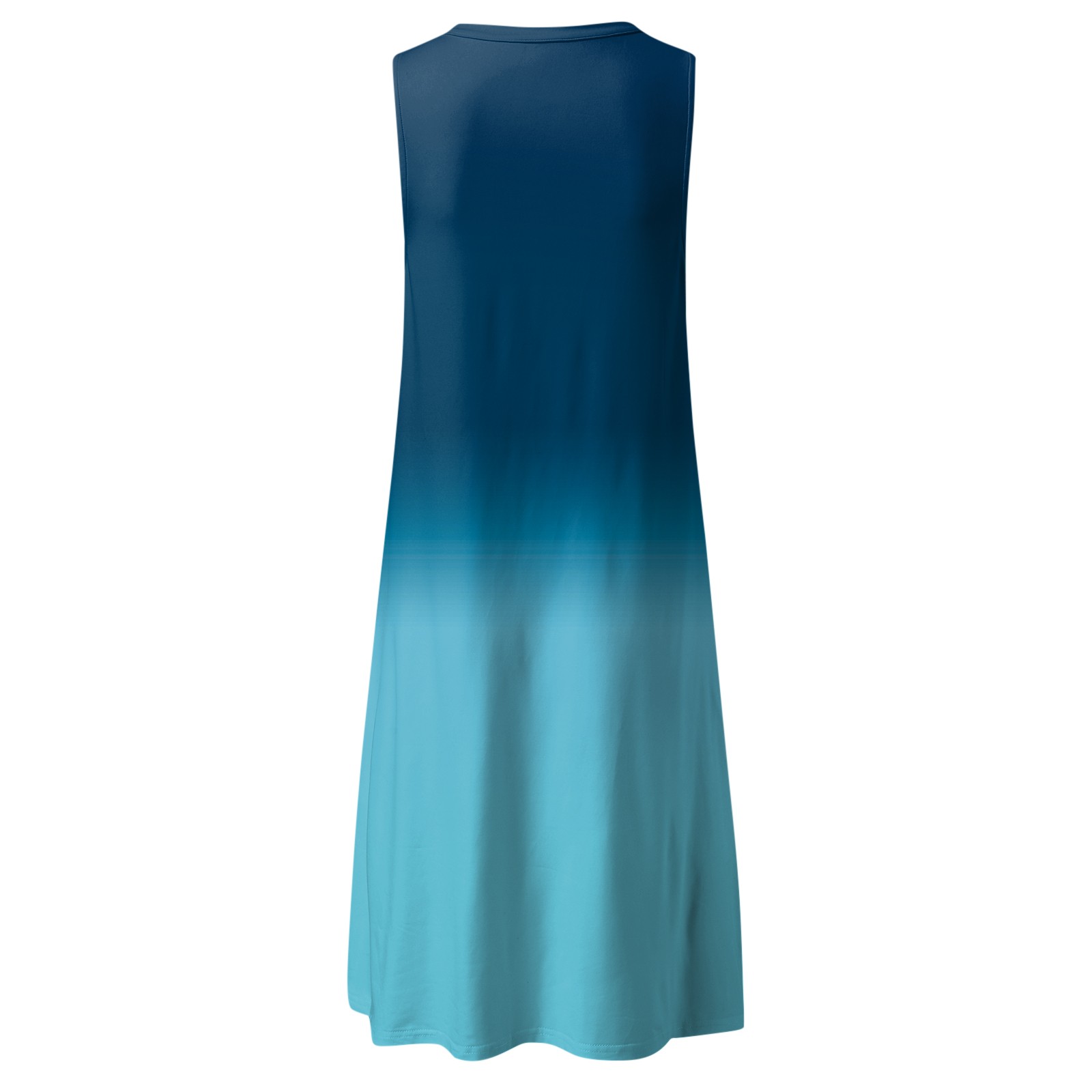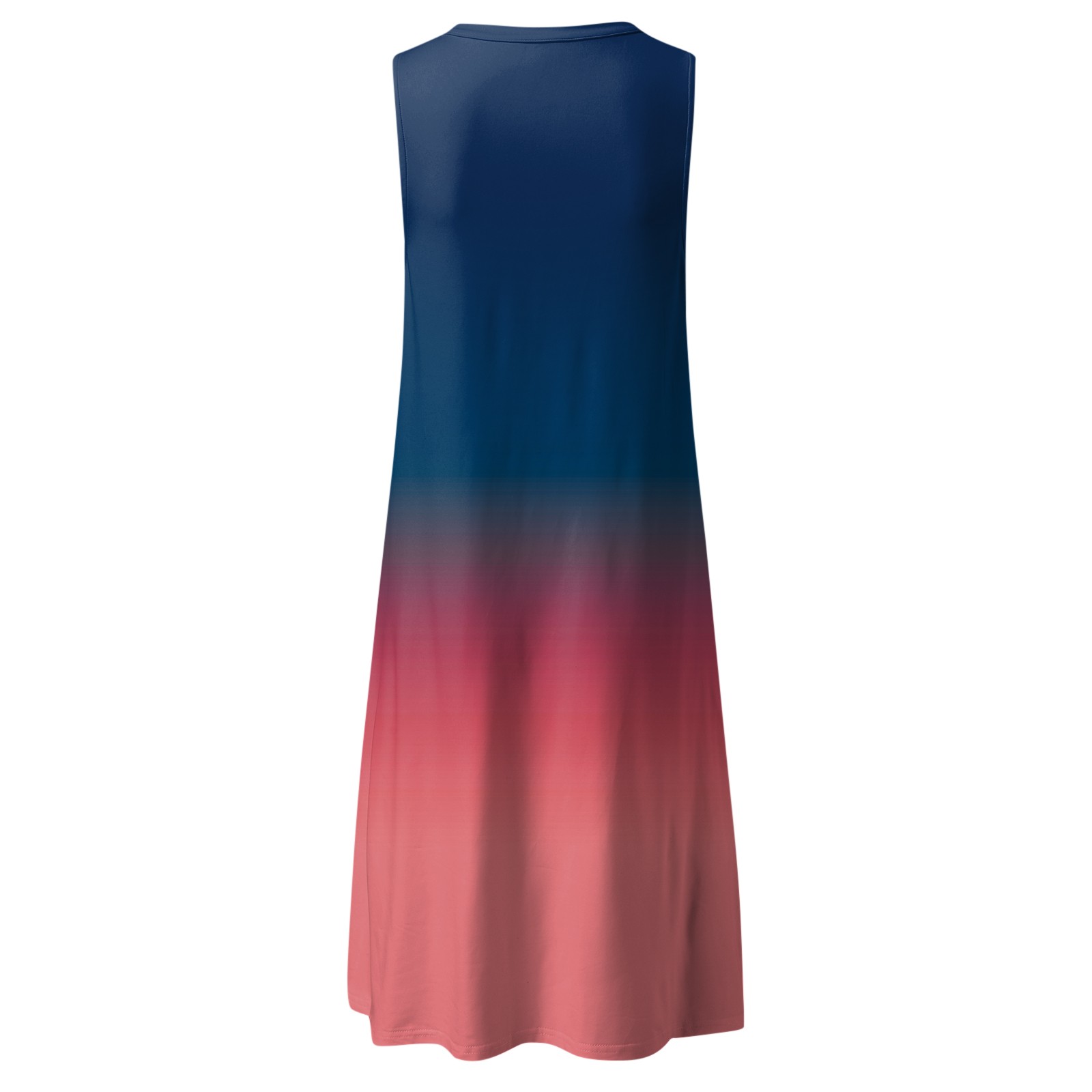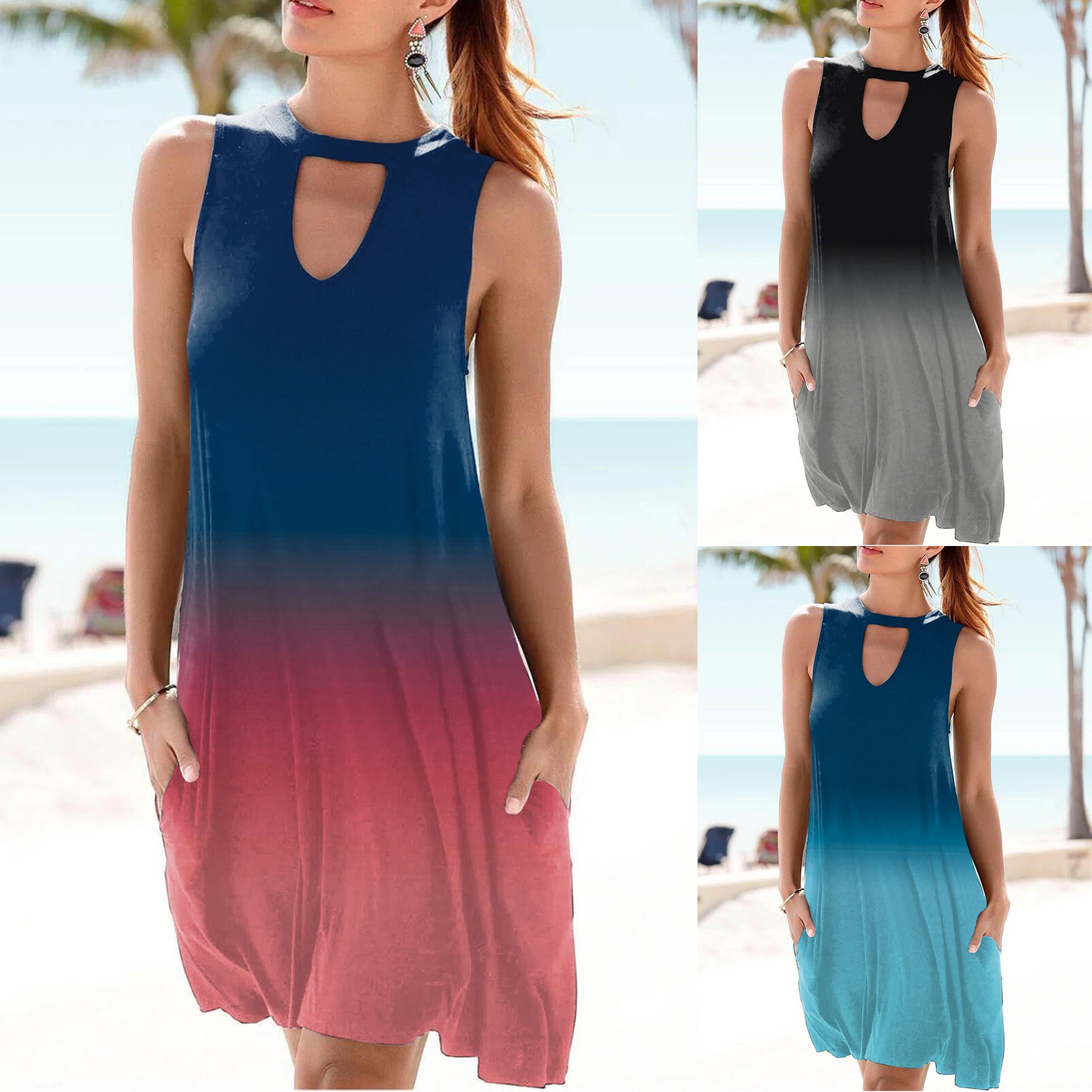 Women Summer Beach Dress Casual Elegant Sexy Dress Sleeveless Loose Dress With Pocket Female Gradient Knee-Length Sundress Femme