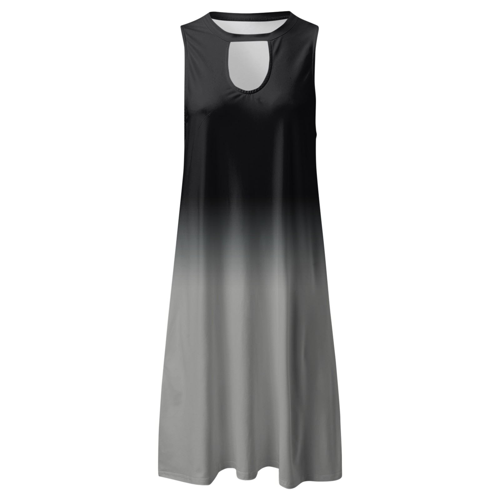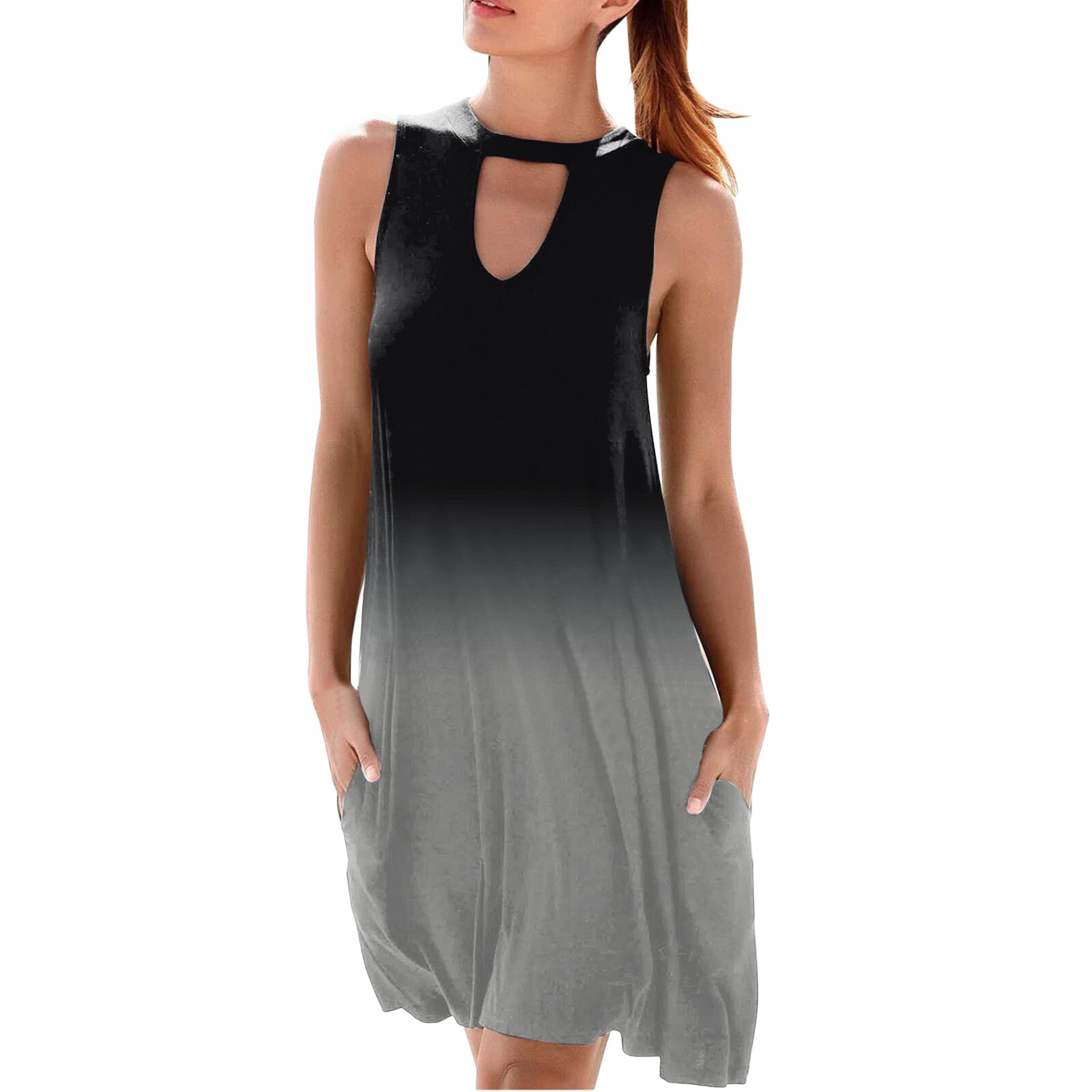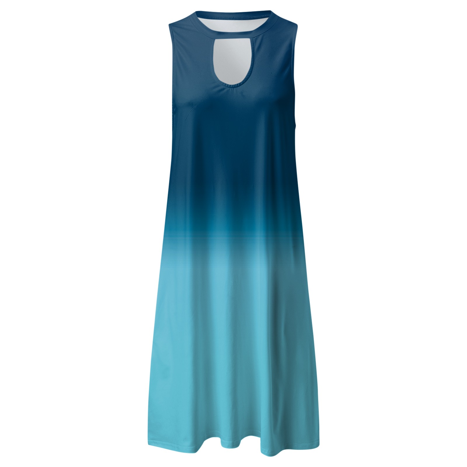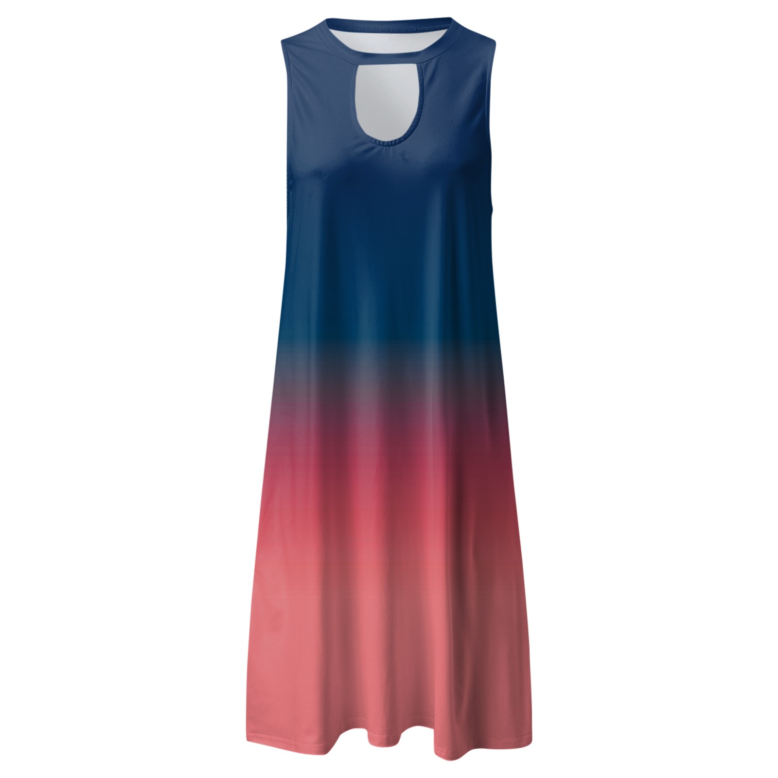 Women Summer Beach Dress Casual Elegant Sexy Dress Sleeveless Loose Dress With Pocket Female Gradient Knee-Length Sundress Femme
